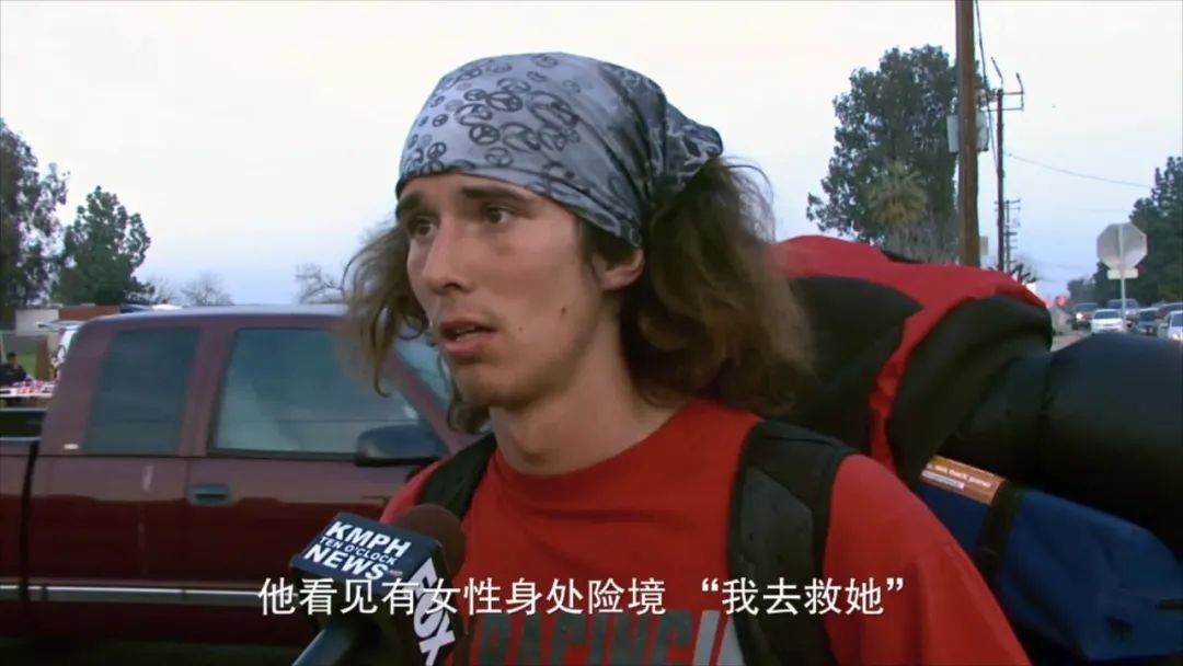 但是这个不一样,他面对镜头不停地讲述自己刚刚救人行为。