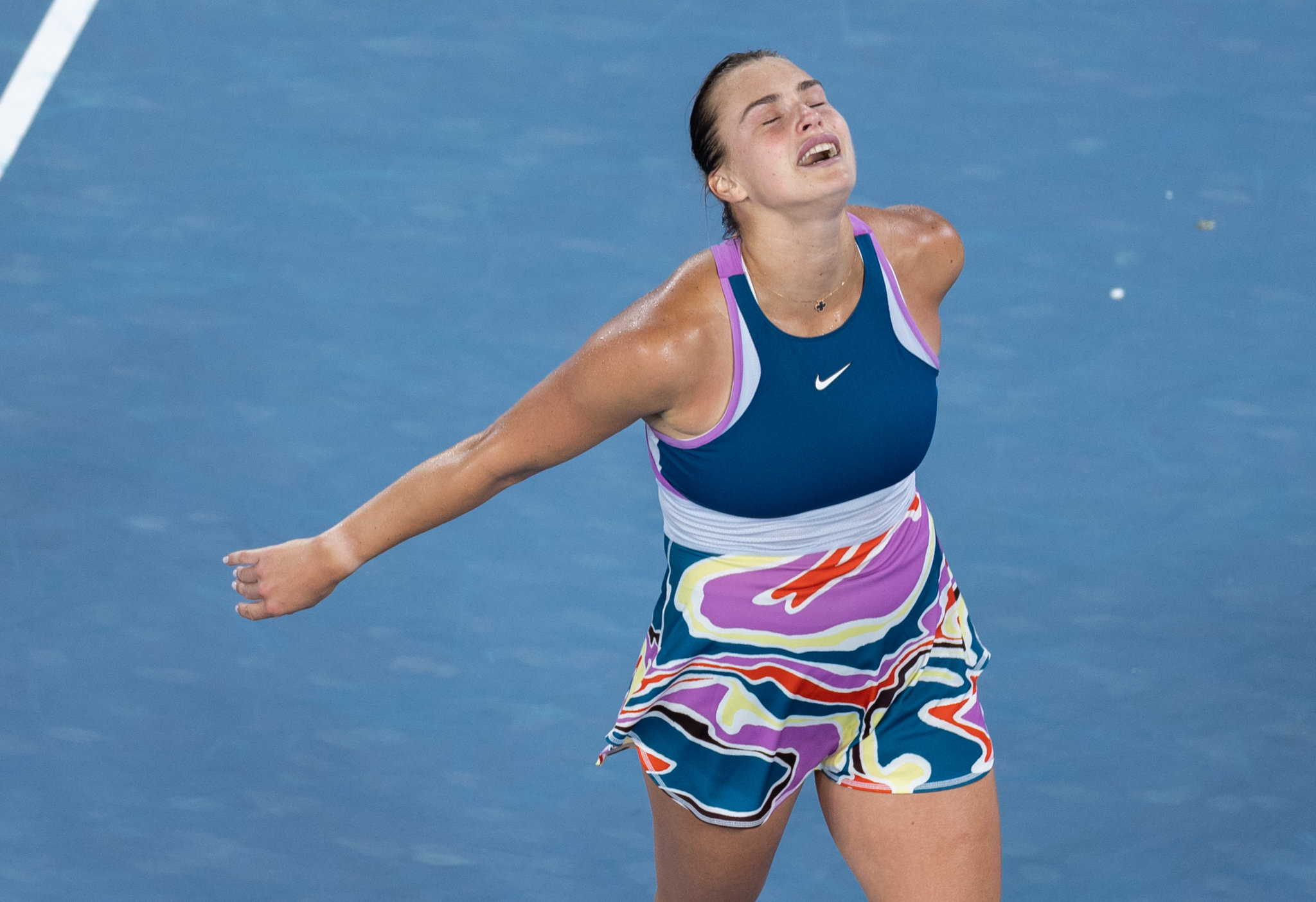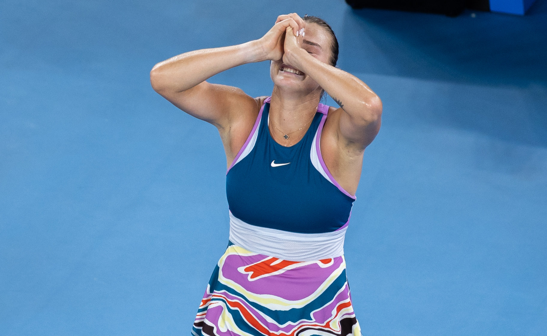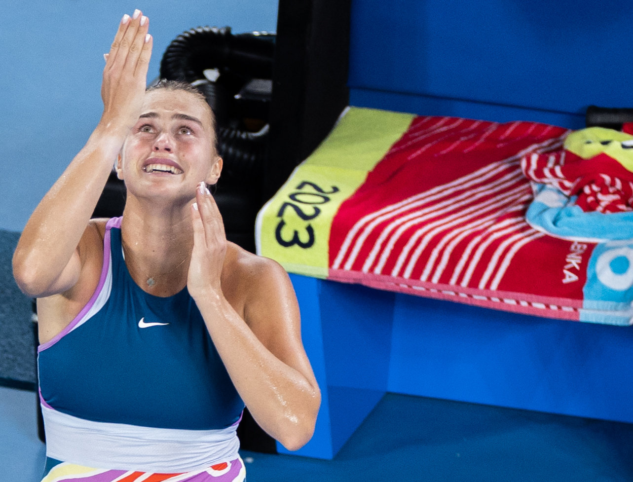 1月28日,萨巴伦卡赛后庆祝夺冠。新华社发(胡泾辰摄)