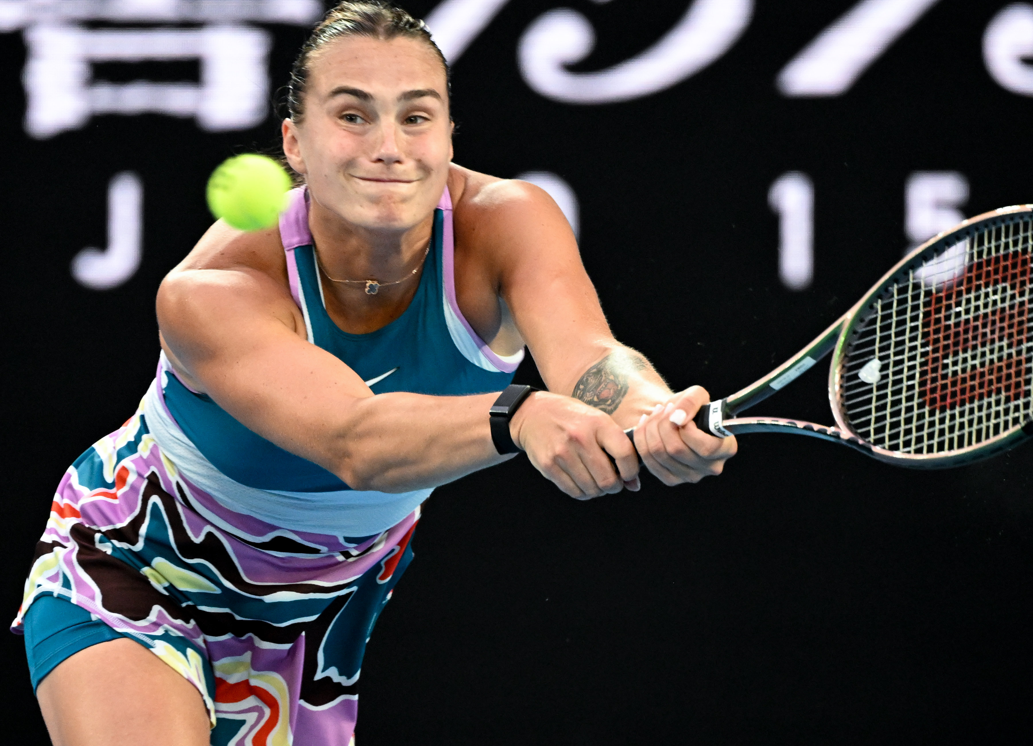 1月28日,萨巴伦卡在比赛中回球。新华社记者 郭磊 摄