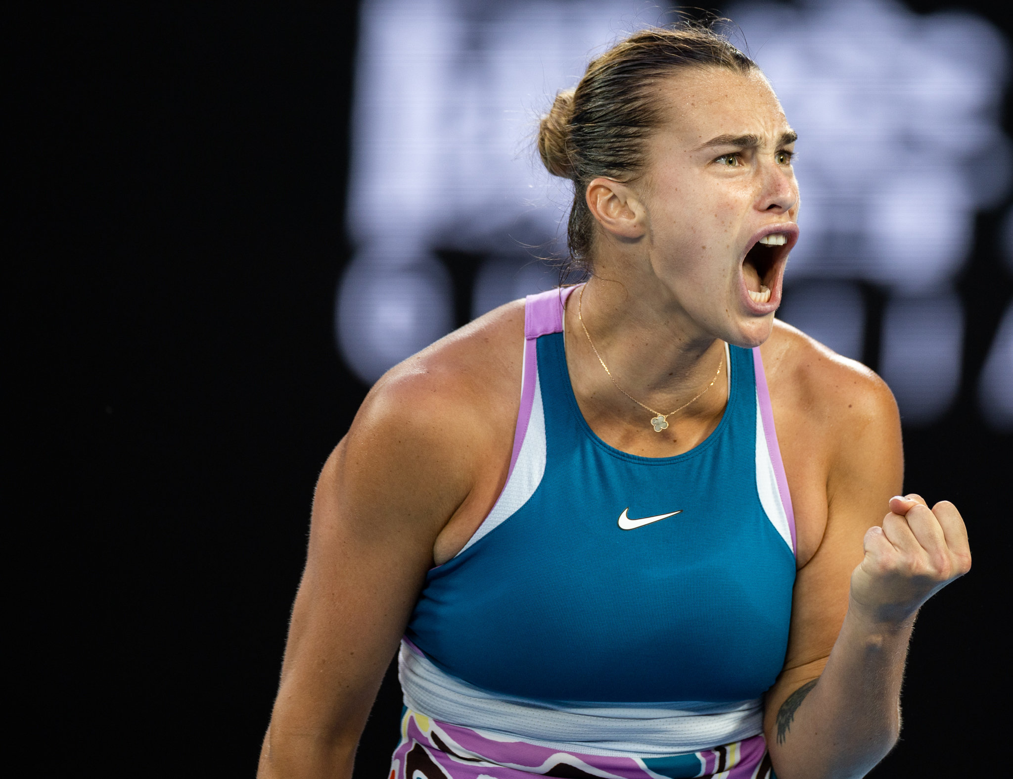 1月28日,萨巴伦卡在比赛中庆祝得分。新华社发(胡泾辰摄)