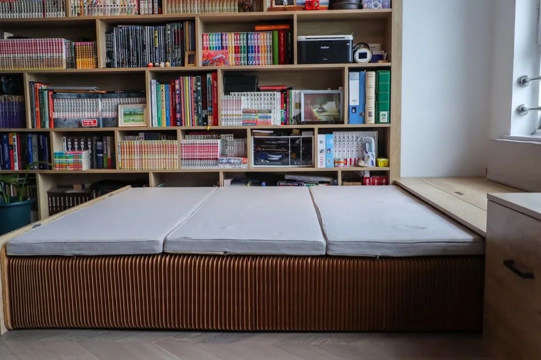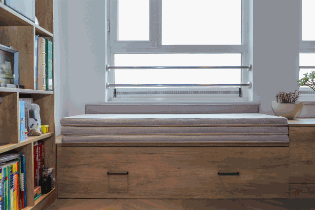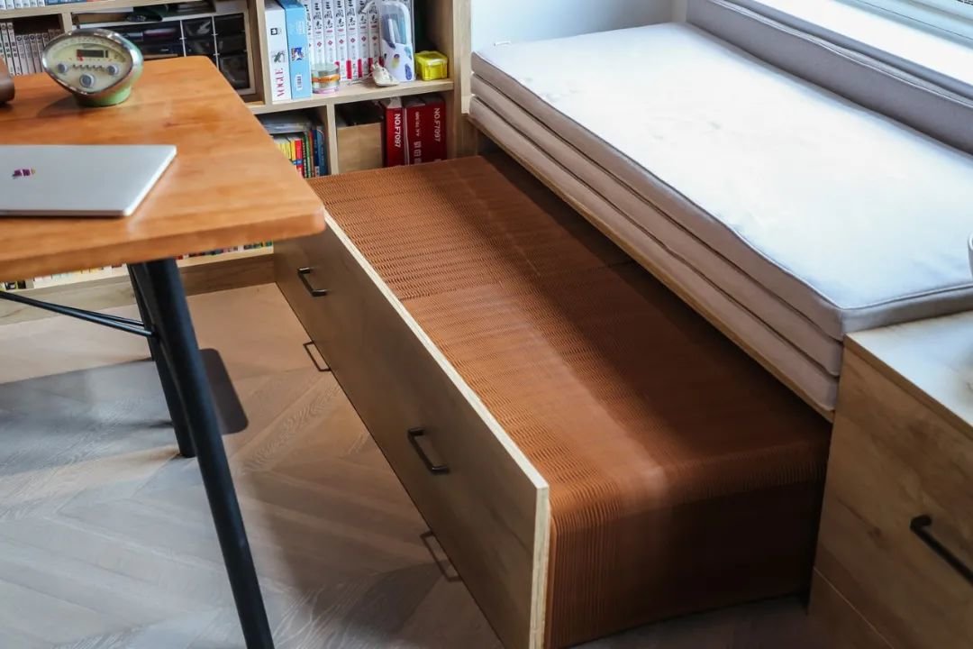 飘窗下方设计隐形床,完全解决临时居住的需求。