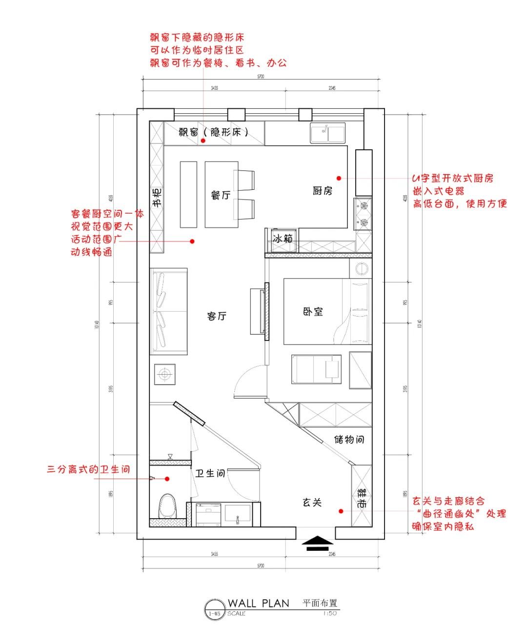 都说鱼与熊掌不可兼得,尤其是对小户型而言,要保证储物和实用性,很可能就得牺牲开阔感。但当小编看到这个案例时,真实地被啪啪打脸。