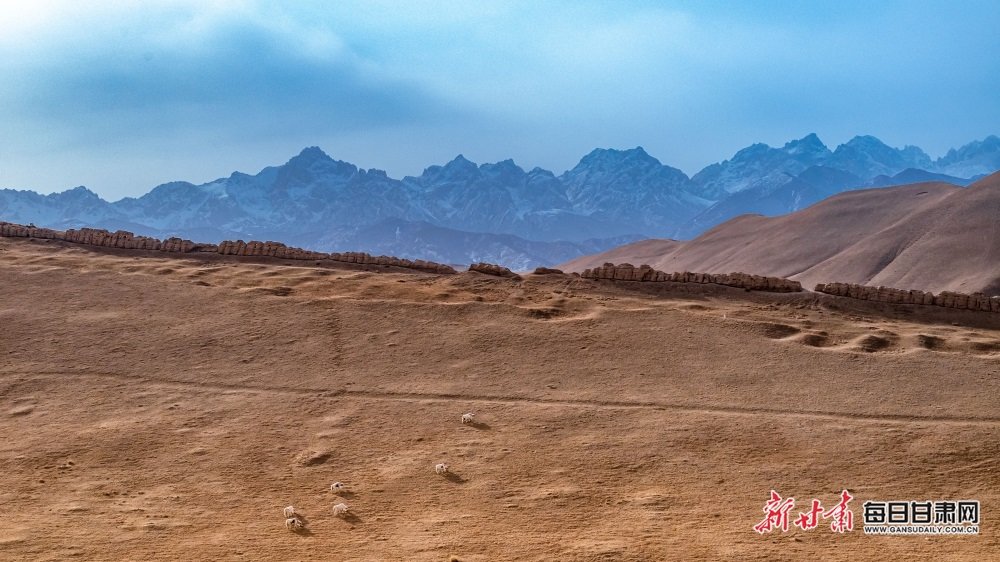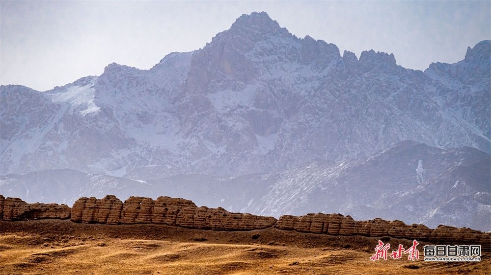 冬日,走进位于武威市天祝藏族自治县境内的乌鞘岭明长城遗址,一幅壮美的画卷映入眼帘,由夯土筑成的墙体延绵不绝,穿越草原,奔向雪山之巅。