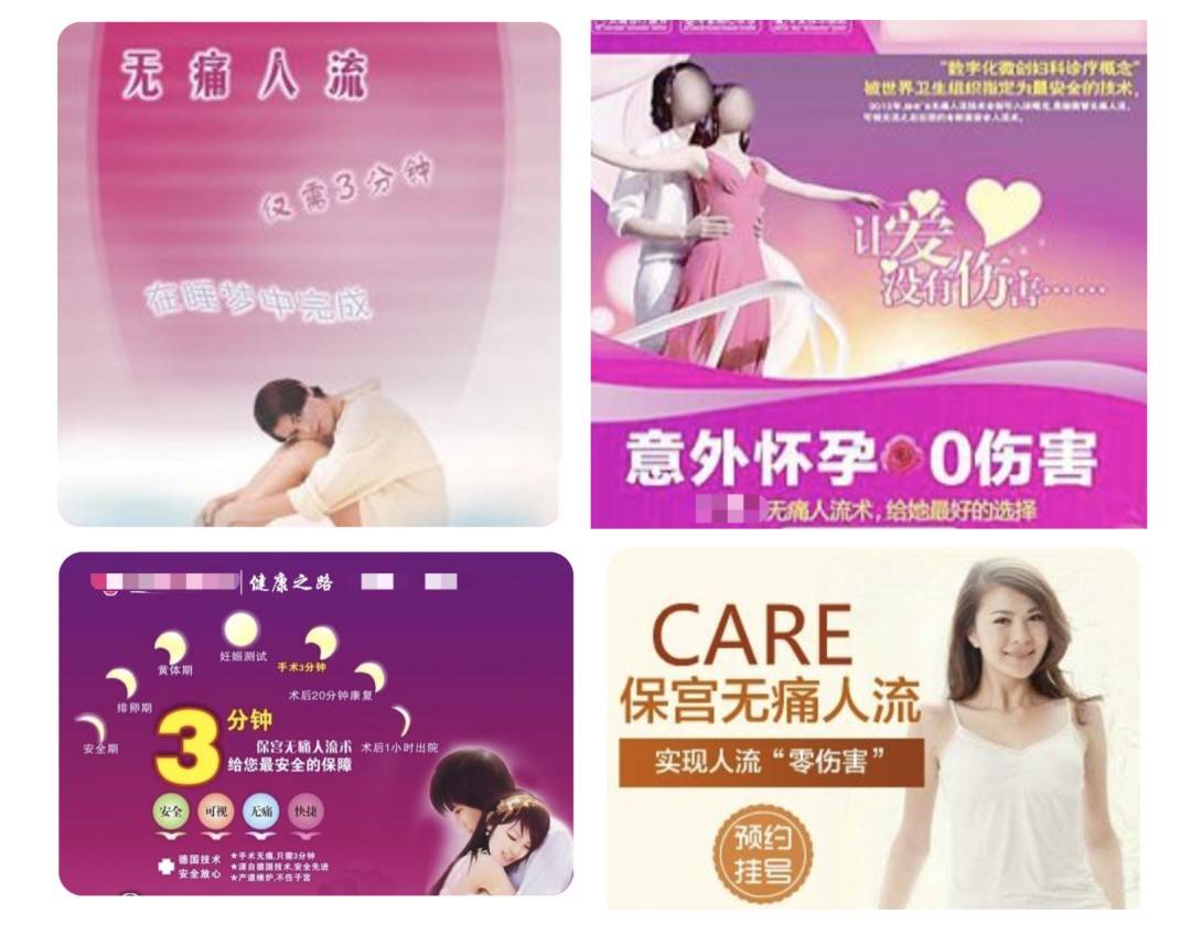 广告中所谓的「知名专家」「XX 技术」「安全无痛」等词语只是用来放大「无痛」的手术过程而隐藏真正人流事实的工具。
