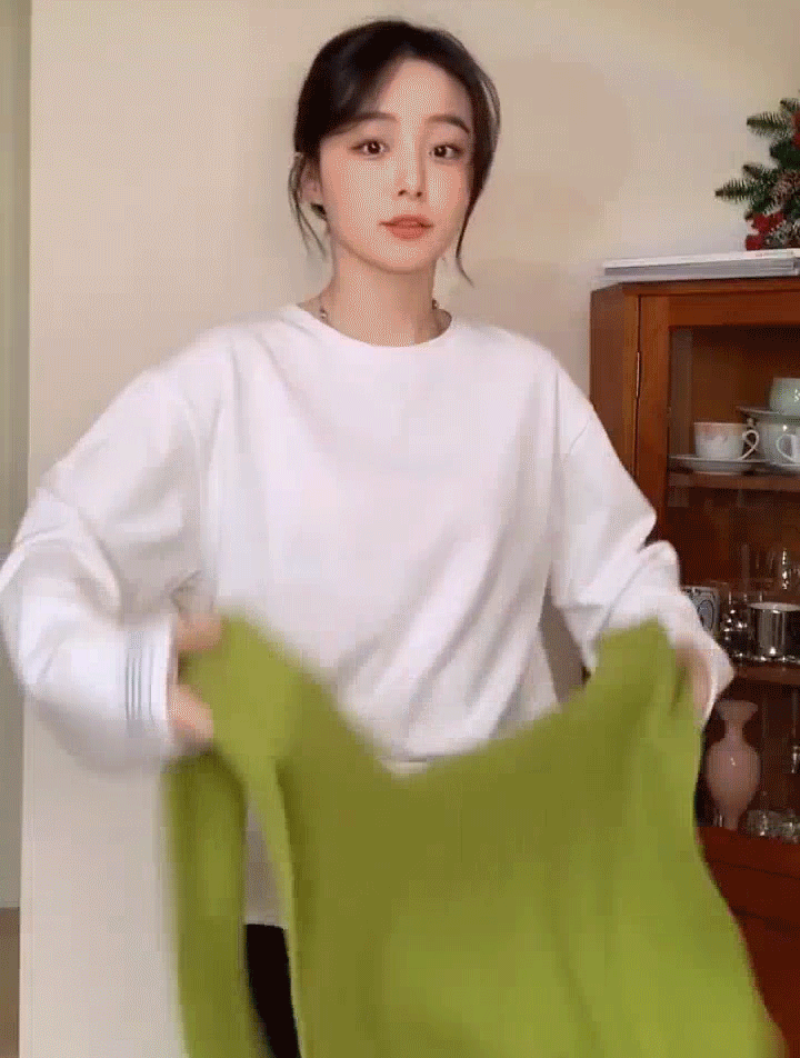 秋冬我们最常使用的,就是V领+高领这个叠穿技巧,这个叠穿法会让脖子有延伸感,显得脖子很细长喔。