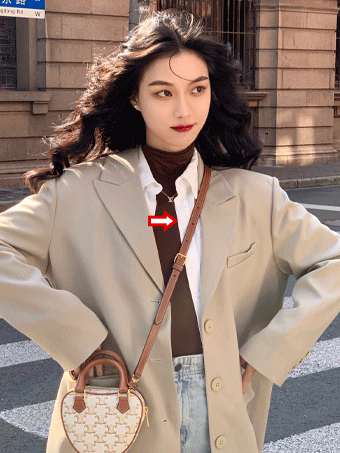 最开始尝试叠穿往往最容易忽略领口这一细节,很多姐妹搭配完发现自己突然变成短脖星人,就是因为领子之间没有错落感👇
