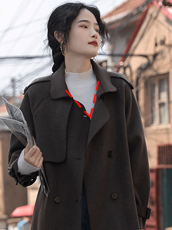 好看的领口是内高外低,在视觉上具有延伸效果,而不是全部堆叠在一起,显得凌乱臃肿。