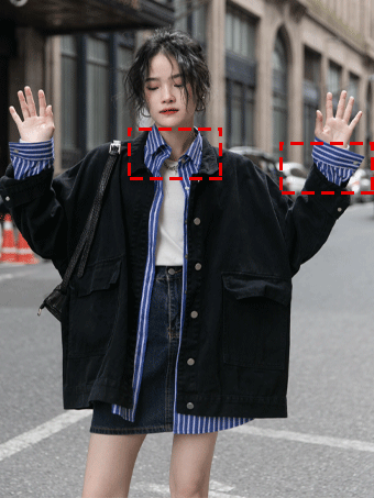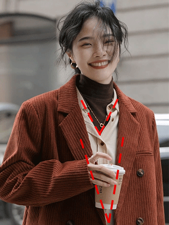 第二个就是马甲的肩部轮廓要贴合自身肩线,也就是正肩马甲,如果是落肩款容易显肩宽背厚喔~
