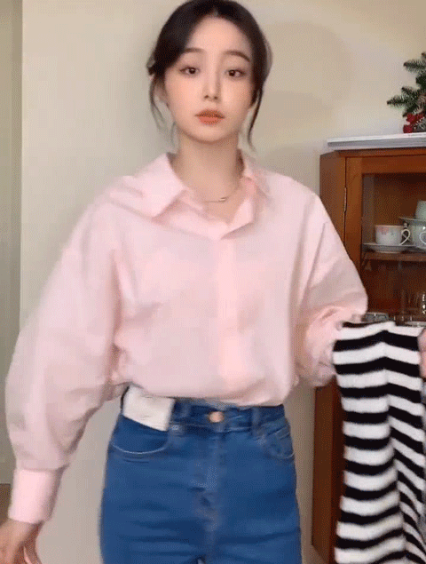 一般我们可以选修身轻薄一点的衣服,像衬衫or修身圆领卫衣之类的,给叠穿预留空间~