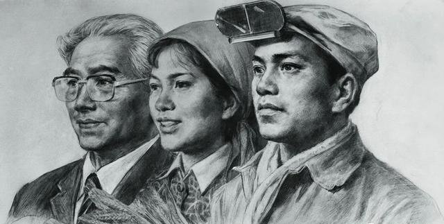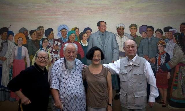 邓澍、侯一民、江青、彭万墀(自左至右)在1964年画作《六亿神州尽舜尧》前