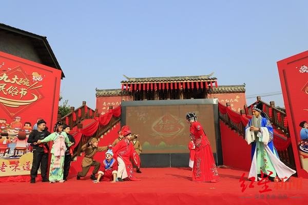 “来喽,来喽!安座啦,大家快来坐起!”上午10时30分,九大碗广场上响起欢快的音乐,开场的狮舞表演立刻吸引了大家。歌曲、舞蹈、戏剧小品、诗朗诵……一个个精彩又接地气的表演,赢得了台下热烈的掌声。