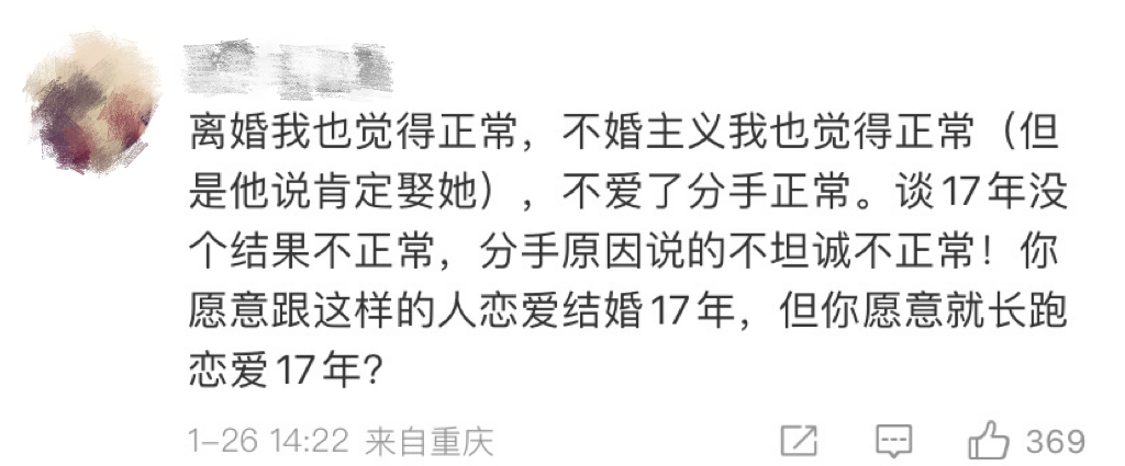 相爱17年,一朝爱情长跑梦碎。