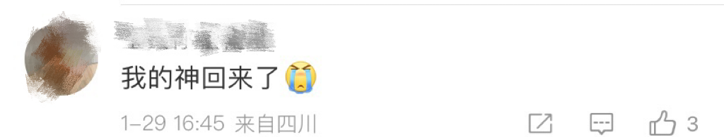 热搜下还有网友评论:我的神回来了。