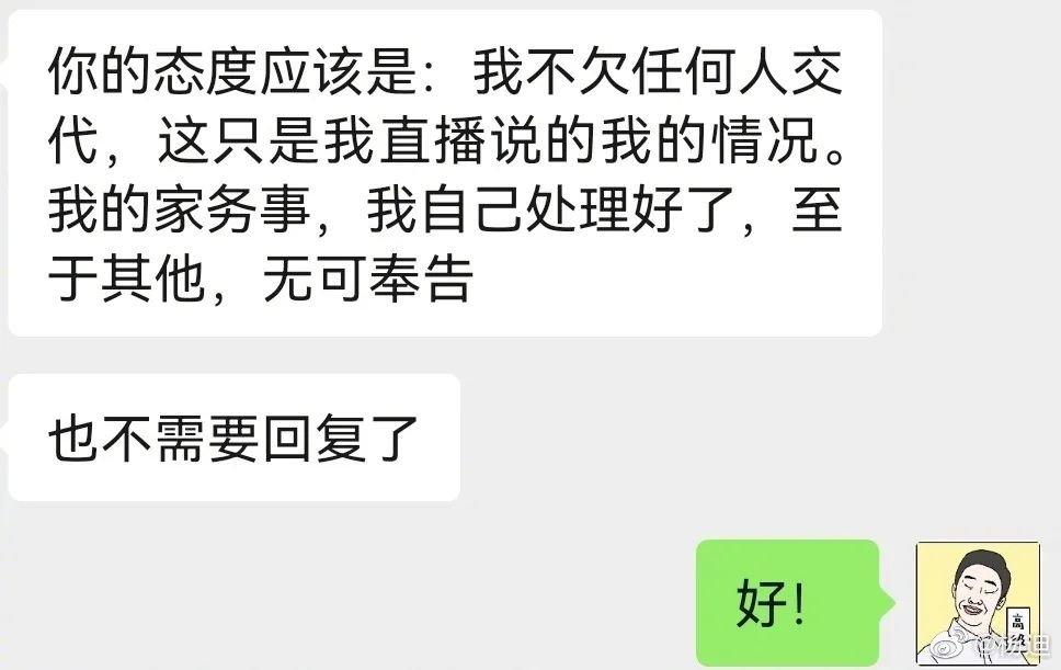 也许在他看来,一句“和平分手”和“我们现在过得都很开心”是他给所有人的一个圆满交代。