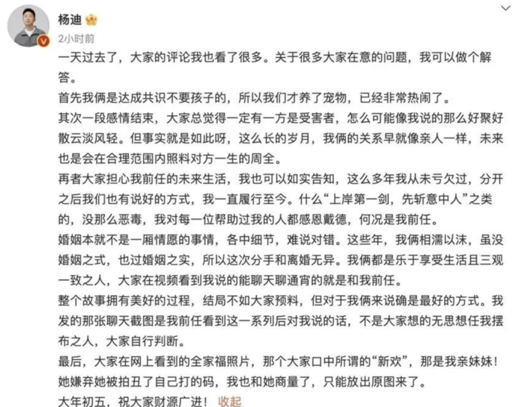 随后,杨迪也坐不住了,直接发微博官方回复大家——