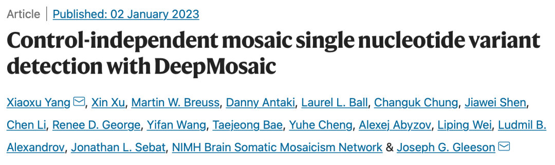 2023 年 1 月 2 日,由其担任共同一作和共同通讯作者的论文,以《基于 DeepMosaic 的非对照嵌合单核苷酸变异检测》(Control-independent mosaic single nucleotide variant detection with DeepMosaic)为题发表在 Nature Biotechnology 上[1]。