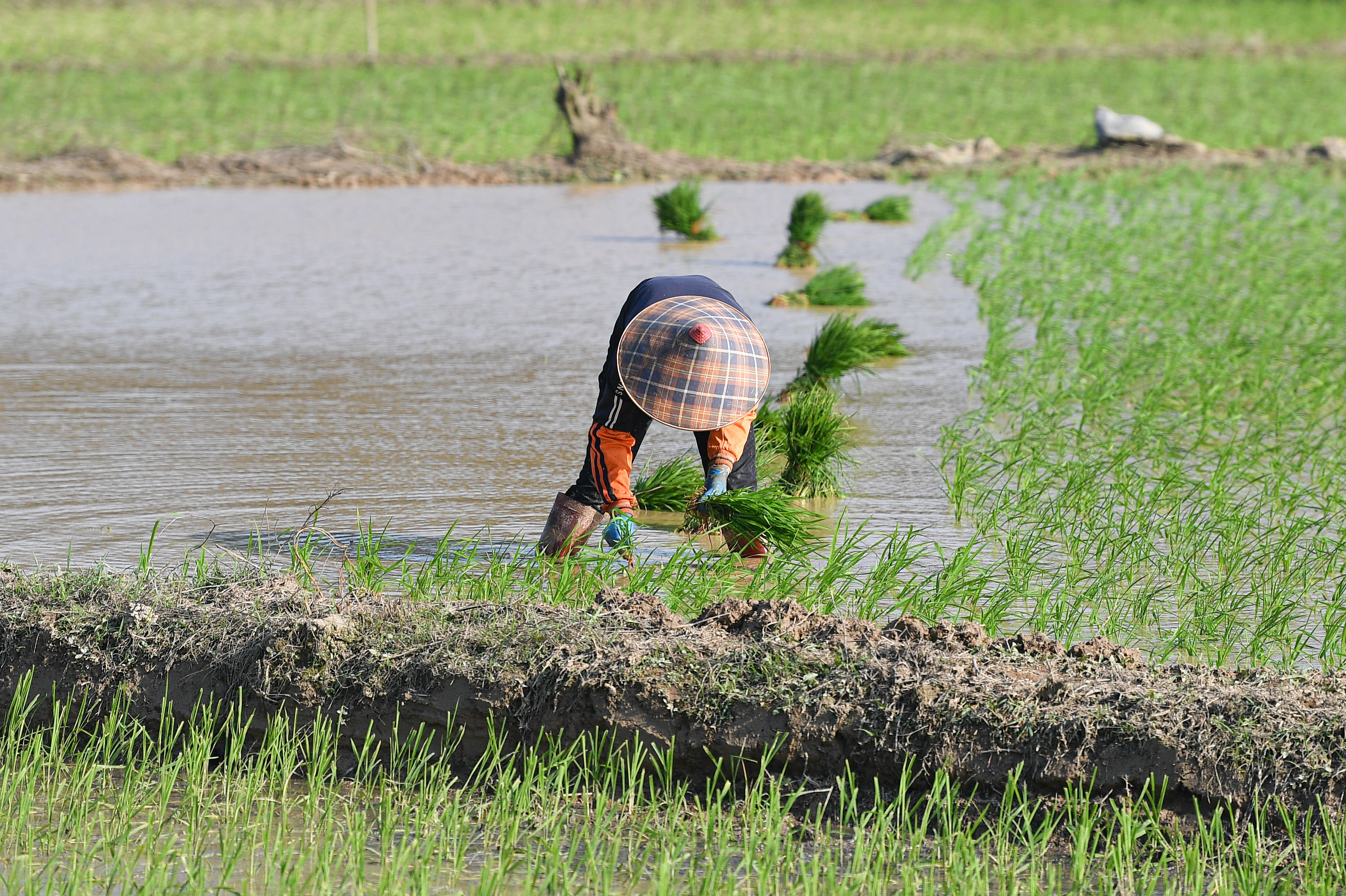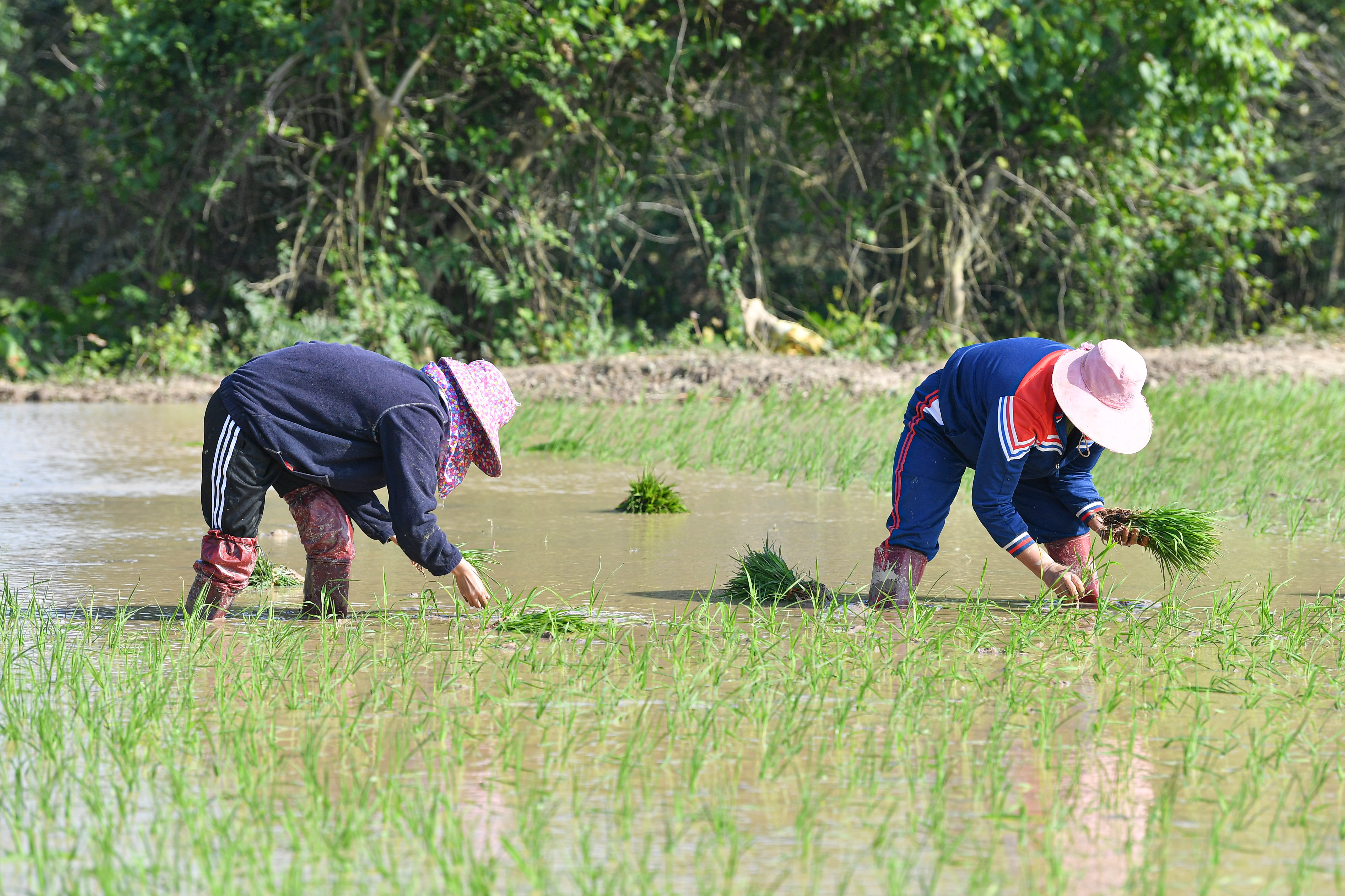 1月30日,农民在海口三十六曲溪省级湿地公园周边的稻田里种植早稻。新华社记者 蒲晓旭 摄