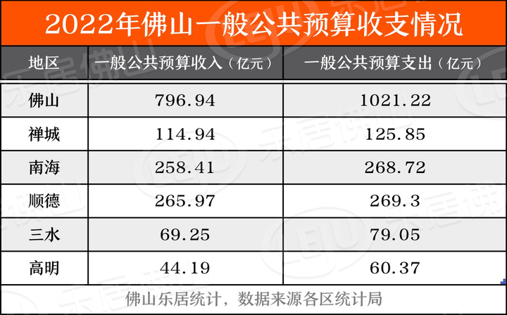 而根据各区统计局数据显示,南海、顺德区一般公共预算收入、支出最多,均超250亿元。
