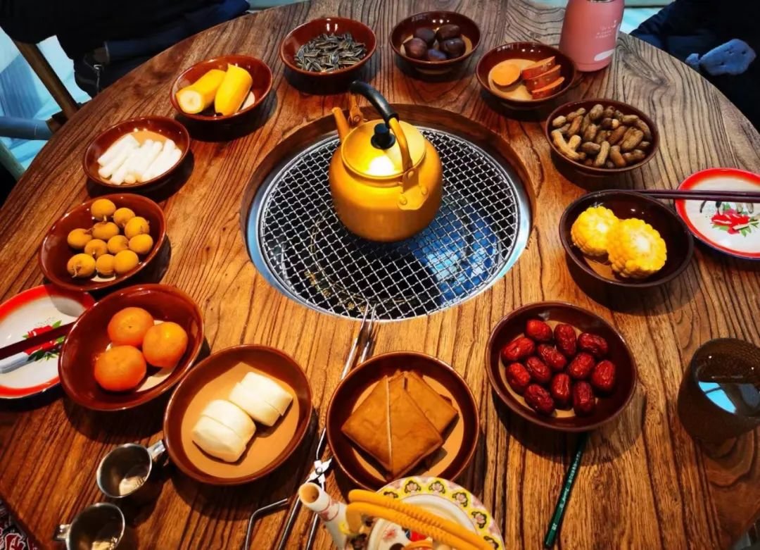 围炉煮茶最早起源于云南,是当地少数民族传承多年的茶文化,在云南当地被叫作“火塘烤茶”或是“糊米烤茶”,“围炉煮茶”是商家们为了易于宣传而起的名字。