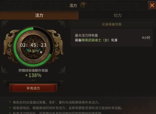 在游戏中还拥有一个活力系统,这个系统就类似于《魔兽世界》中的旅馆下线休息,在非战斗期间就能够补充活力,最高能够达到200%的额外经验,也就是300%的经验。