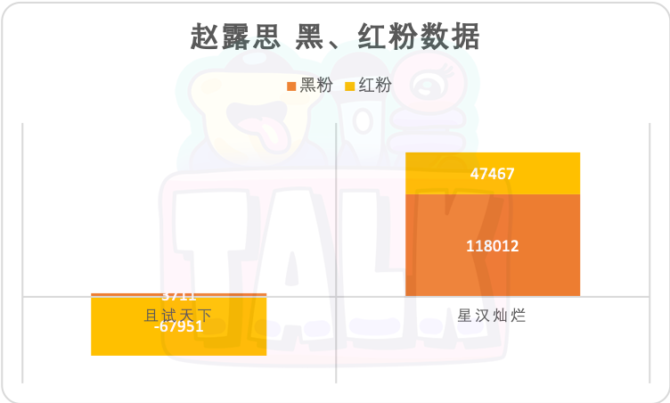 黑粉数据显示,《星汉灿烂》在播期间,赵露思黑粉增量惊人,接近12万的增量数据,也是本年度热播剧集演员当中的黑粉增量首位。这一数据,甚至是《且试天下》时期的32倍。要知道,前者的口碑可要明显优于后者。就连靠《卿卿日常》迅速在舆论场博得一席之地,在GQ盛典上开了一些饭圈梗玩笑的田曦薇,其4万黑粉增量,都得让让道。