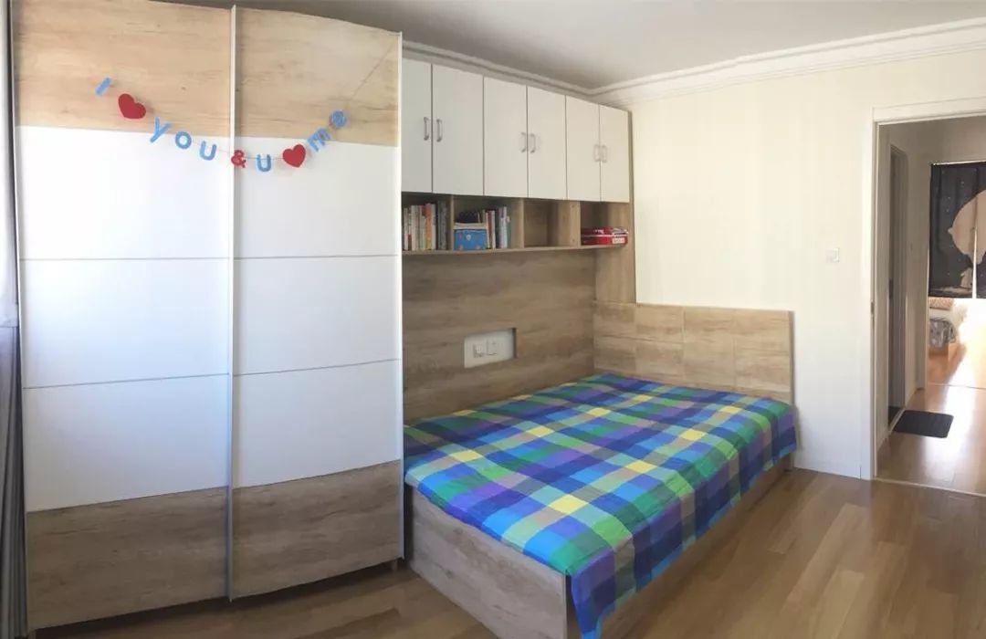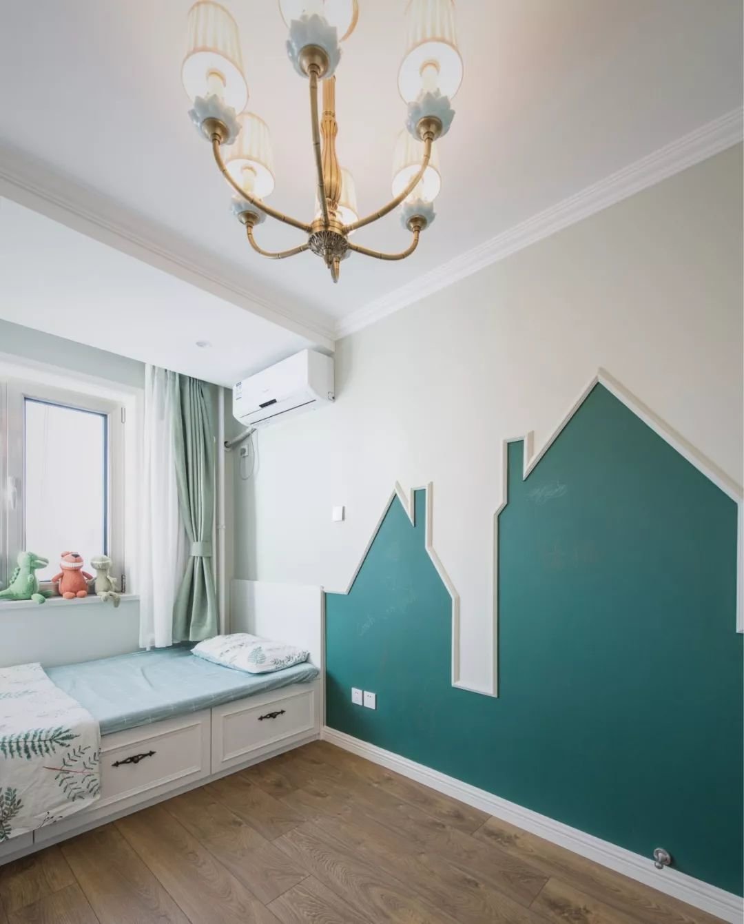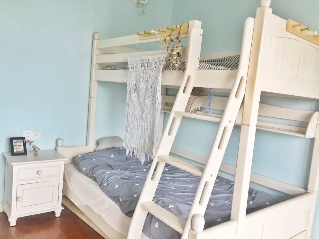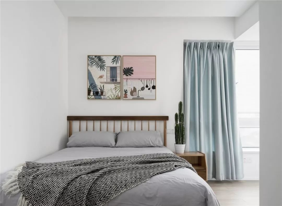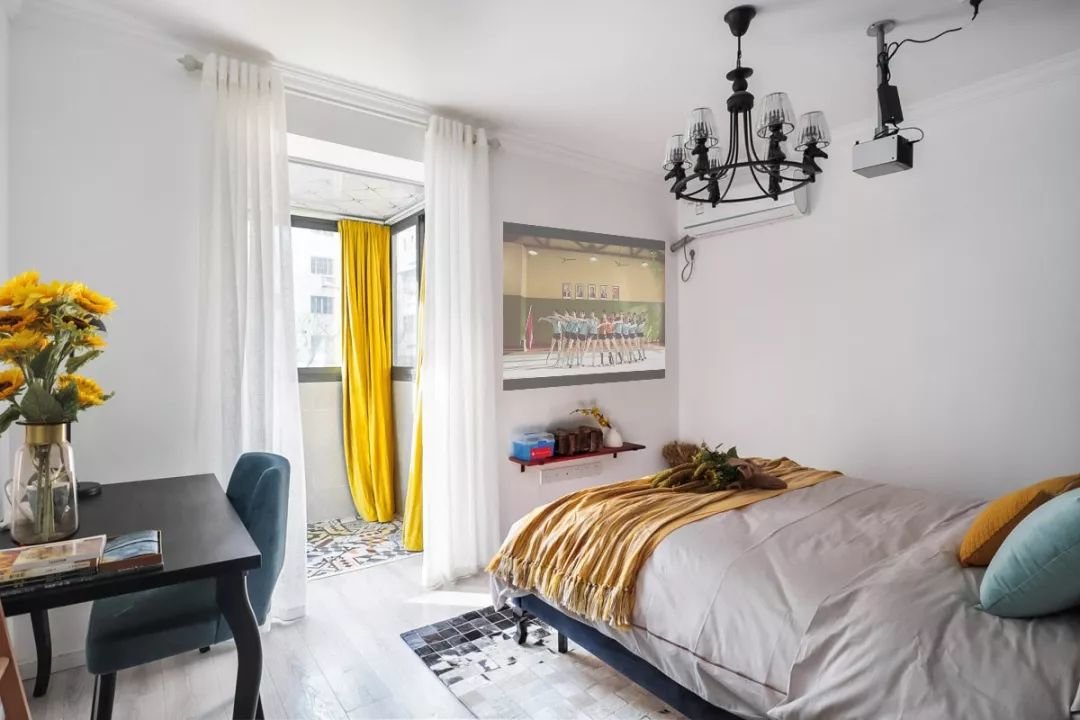 在小户型空间里,往往都会有个卧室的面积是比较小的,这个卧室的床铺一般是不能居中摆放,而是要靠墙布置,这样布置的床铺,就会有一侧是靠墙的了,通过这样布置可以让空间显得更加实用宽敞,同时留出足够的通道让空间更加舒适。而且小卧室如果作为小孩房的话,有一侧靠墙布置,还可以给孩子带来安全感,不用担心睡觉时候转身不小心滚到床下。