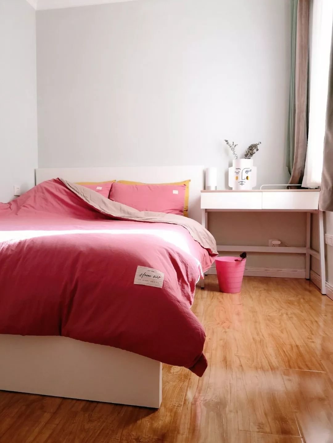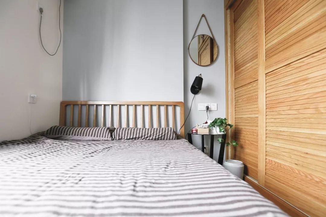 今天,小编整理了一些把床靠墙布置的卧室案例,各位看看适合适合自家的小卧室吧!
