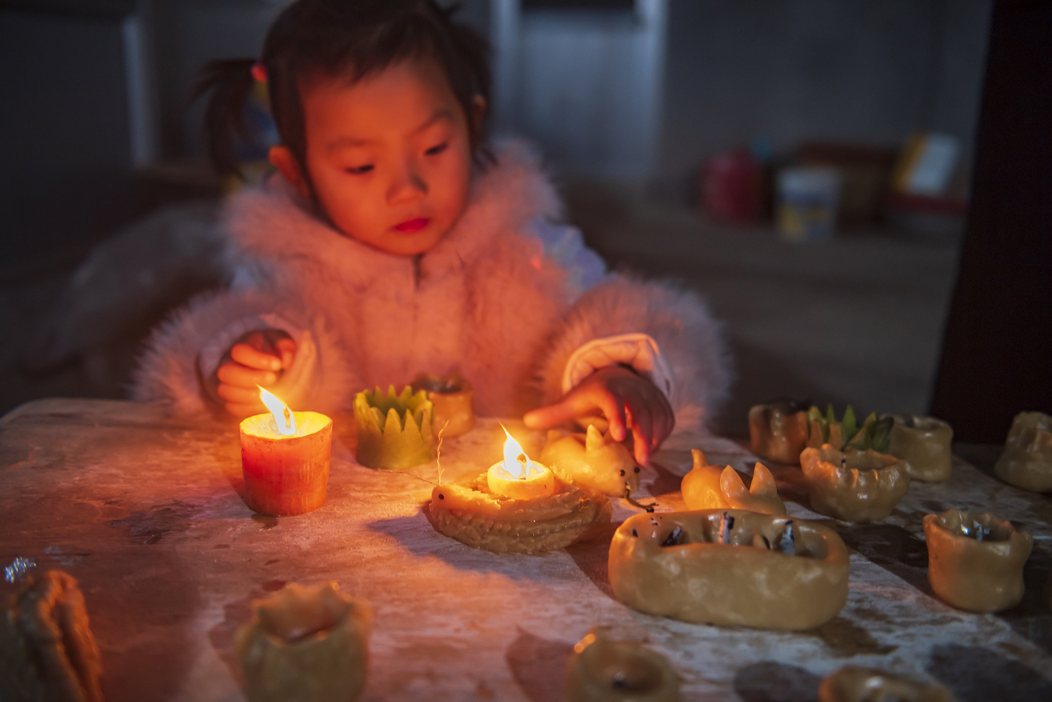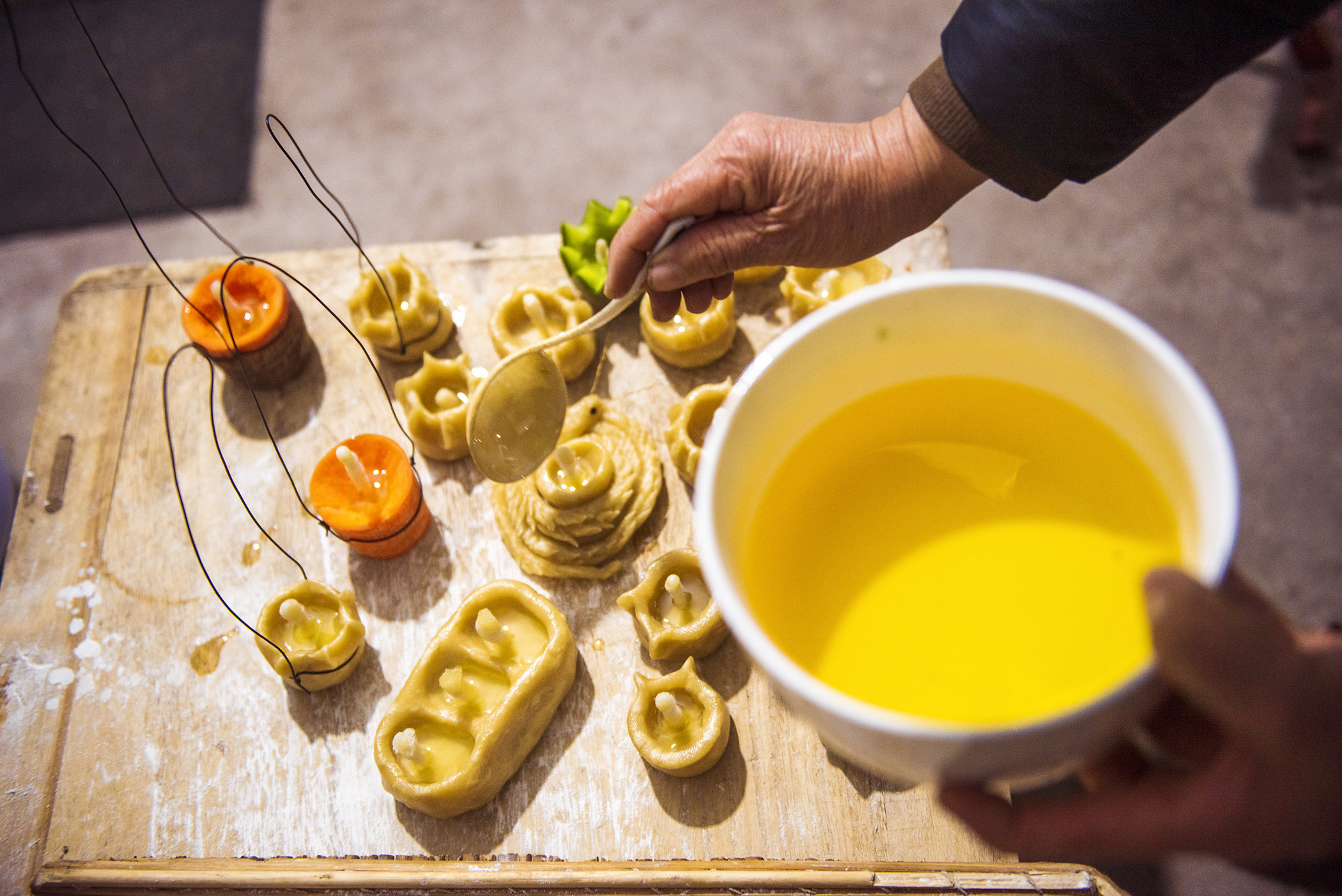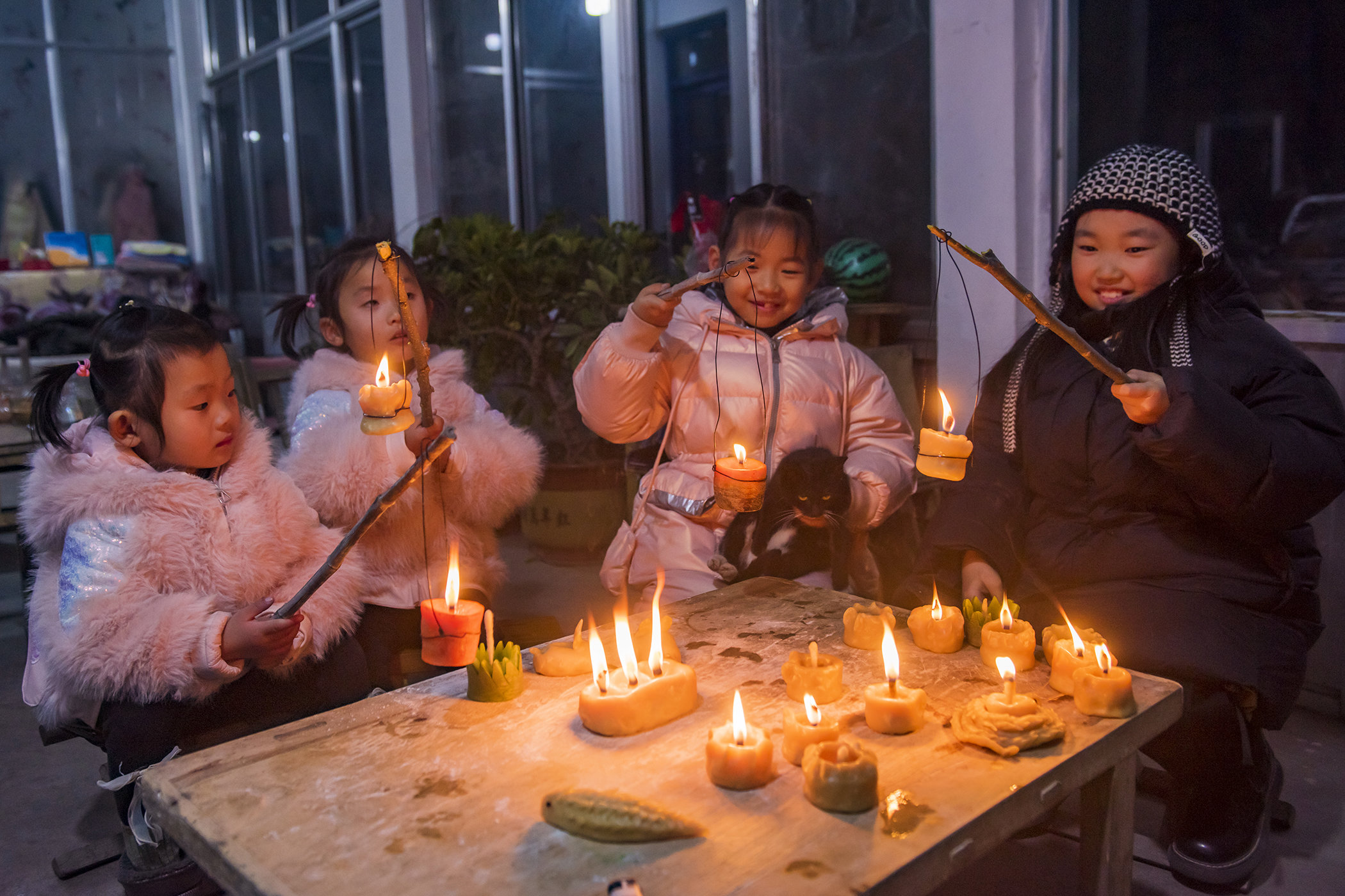 2月2日,在山东日照夏庄镇大荒村,宋玉霞和家人正在制作“面灯”。她先用面粉揉成面团,做成各种形状,然后上锅蒸熟。晚上在灯窝里插上灯芯,倒上植物油,将灯点亮。
