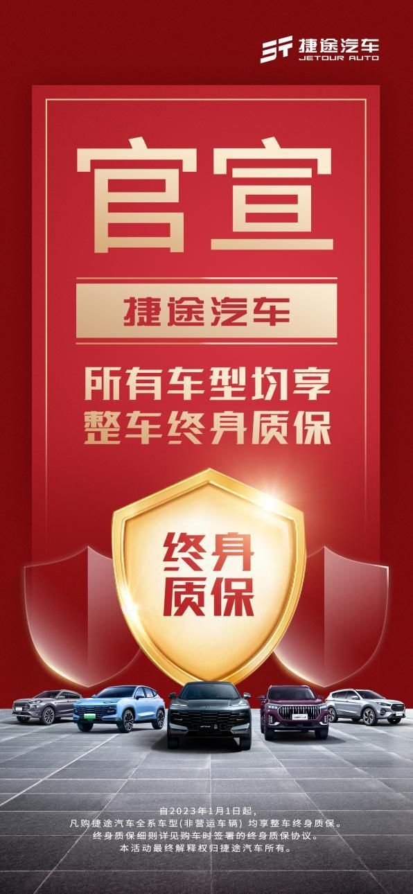 进入2023年,各大车企又要开始新一轮的征程。捷途汽车官宣“全系车型整车终身质保”政策,树立了汽车行业服务新标杆,成为国民品牌的先驱代表。