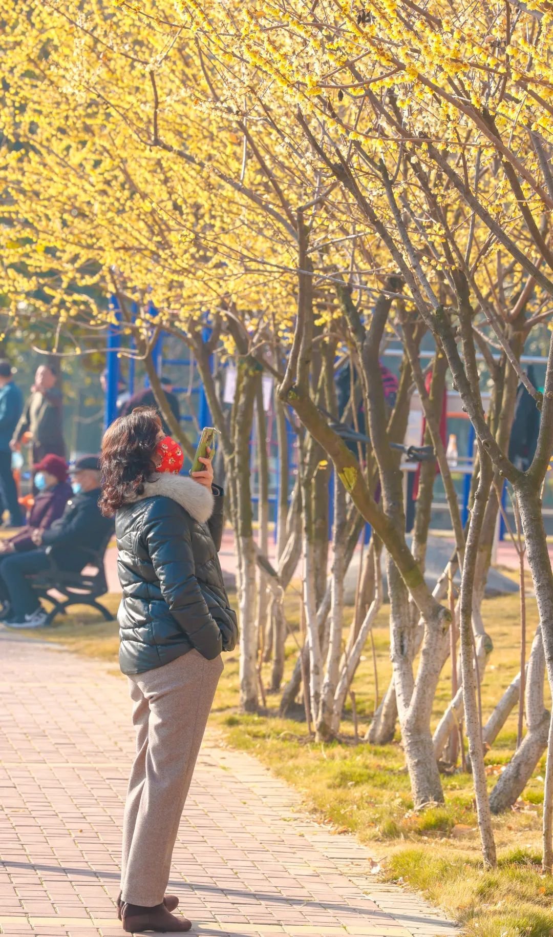 紫阳公园大片的蜡梅正值盛花期