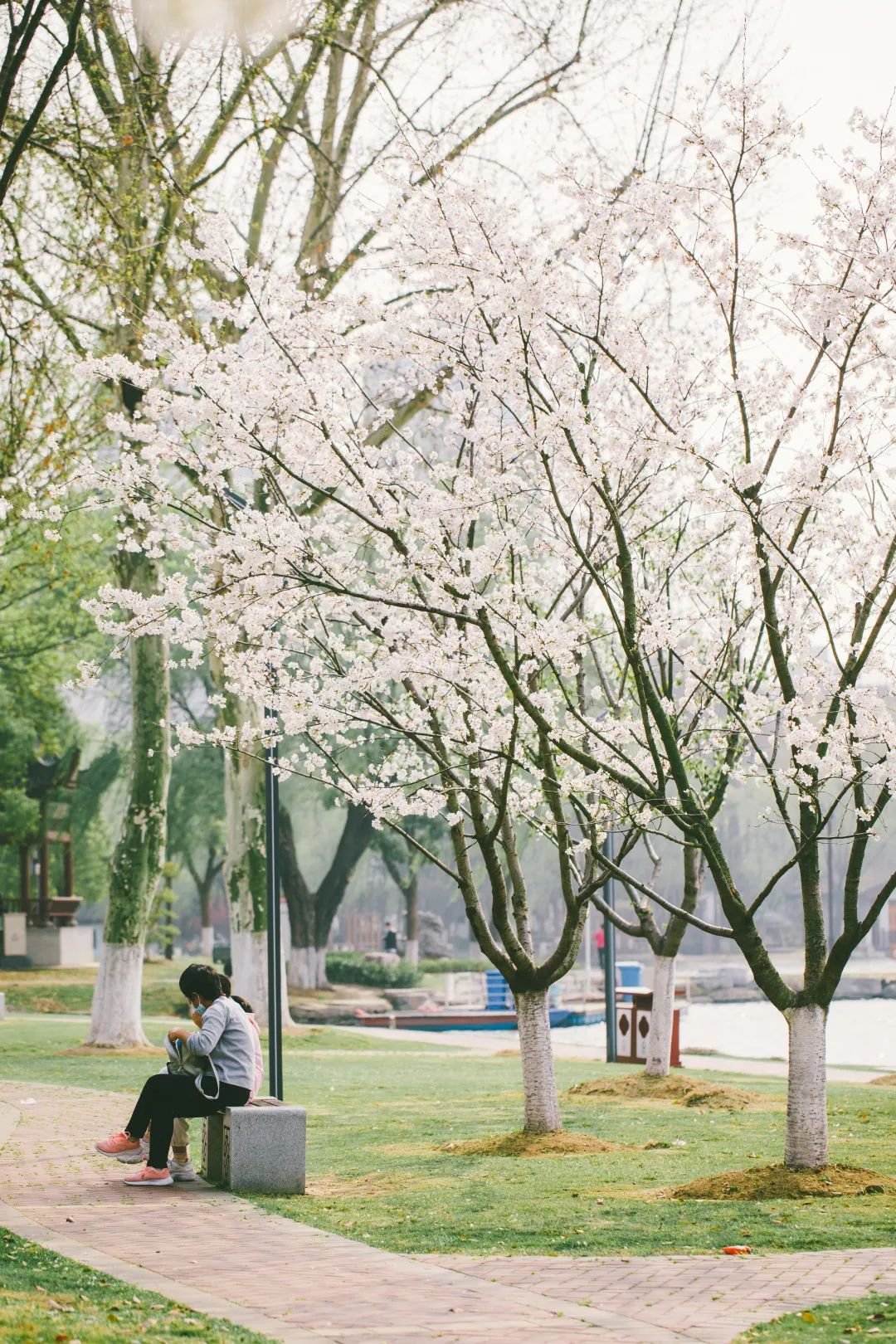 那湖边长椅上、路边石阶上