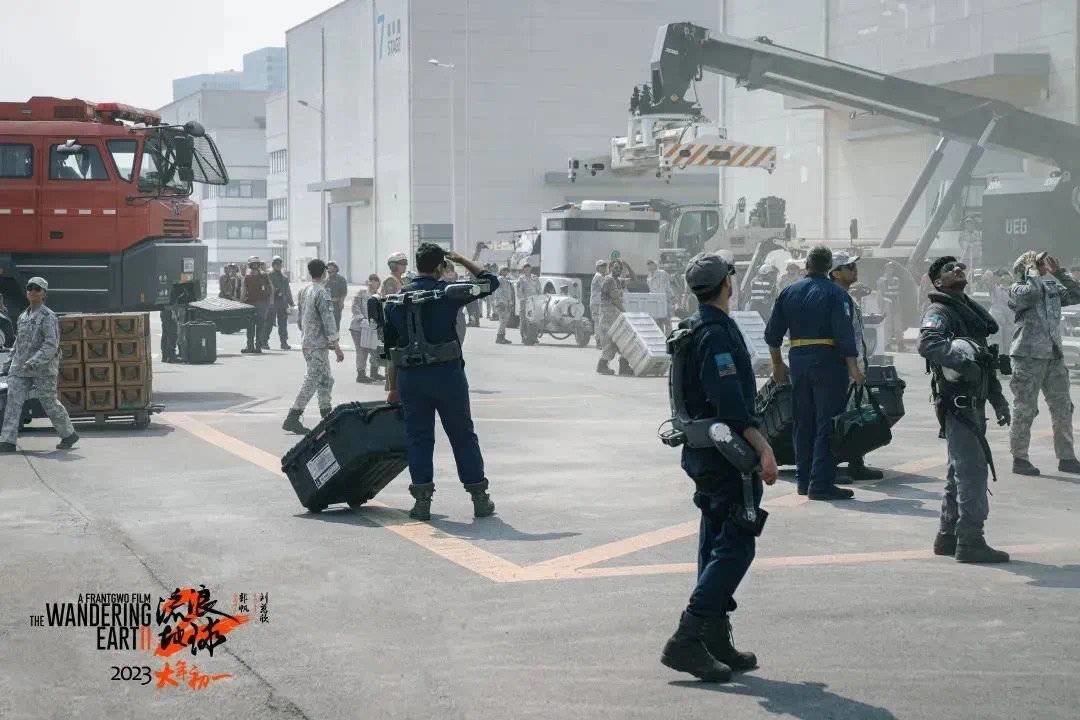 《流浪地球2》中工作人员佩戴外骨骼(图片来源于网络)