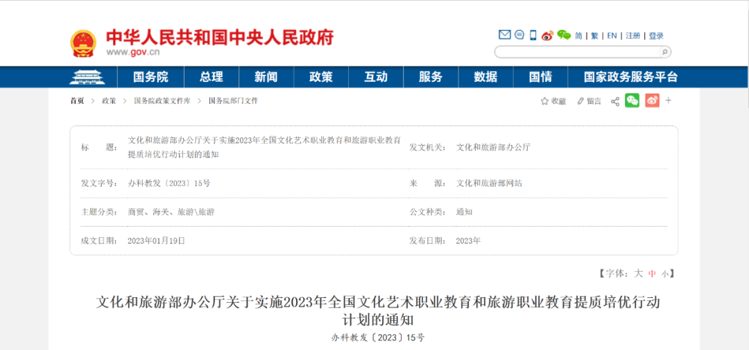 近日,文化和旅游部办公厅印发《关于实施2023年全国文化艺术职业教育和旅游职业教育提质培优行动计划的通知》,旨在推动文化艺术职业教育和旅游职业教育深化产教融合、校企合作,提高行业人才培养适应性和技术技能水平。