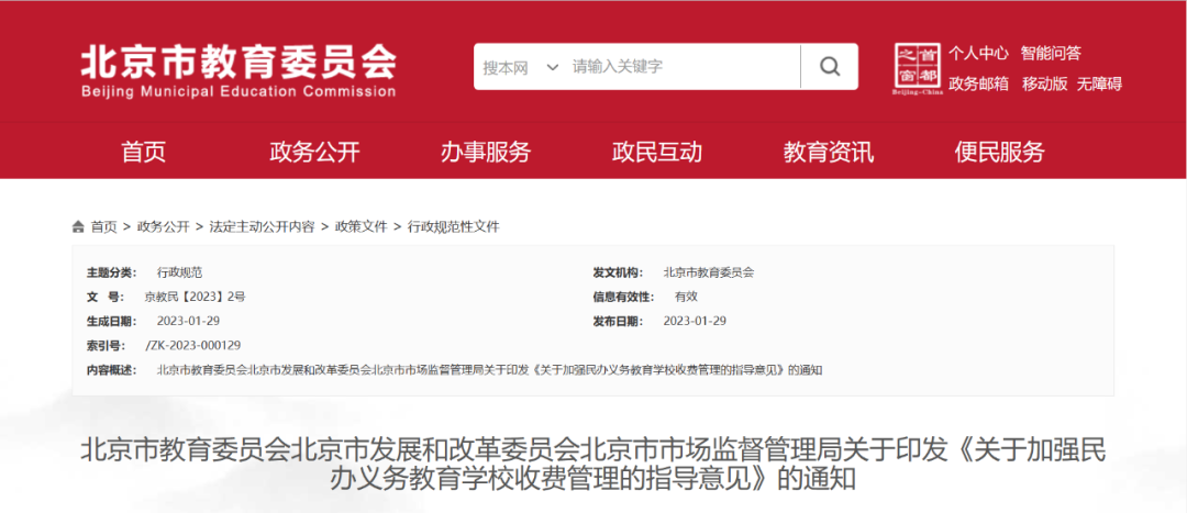 近日,北京市多部门联合制定印发《关于加强民办义务教育学校收费管理的指导意见》,进一步加强民办义务教育学校收费管理,规范本市民办义务教育学校收费行为。