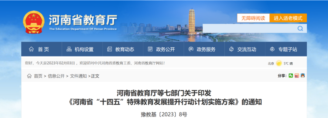 近日,河南省教育厅等部门印发《河南省“十四五”特殊教育发展提升行动计划实施方案》,进一步完善特殊教育保障机制,促进特殊教育内涵提升。《方案》提出,建设省级残疾学生大数据管理平台,推进特殊教育智慧校园、智慧课堂建设;加强特殊教育教研力量,县级以上教研机构应至少配备1名特殊教育教研员。