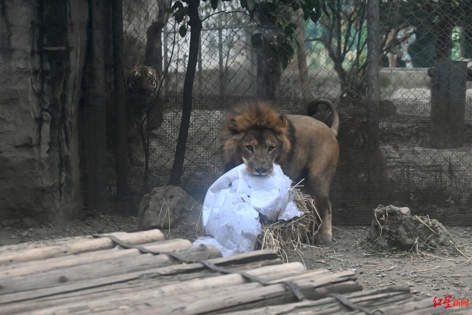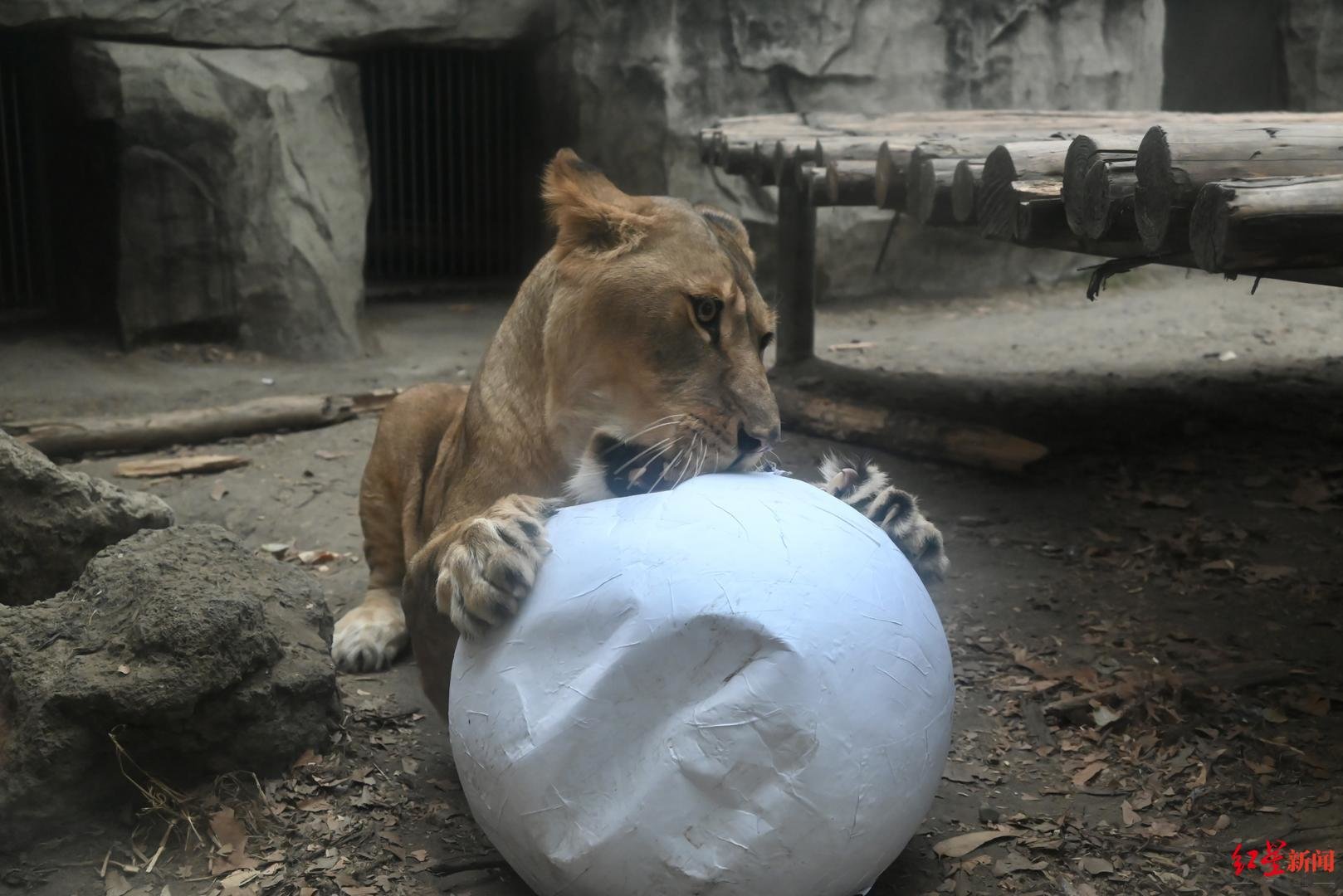 而令人忍俊不禁的是,发“汤圆”时,公狮子只能在不远处望着,等母狮子先享用。成都动物园工作人员表示,“家庭地位低,打也打不过,公狮子是名副其实的‘耙耳朵’。”