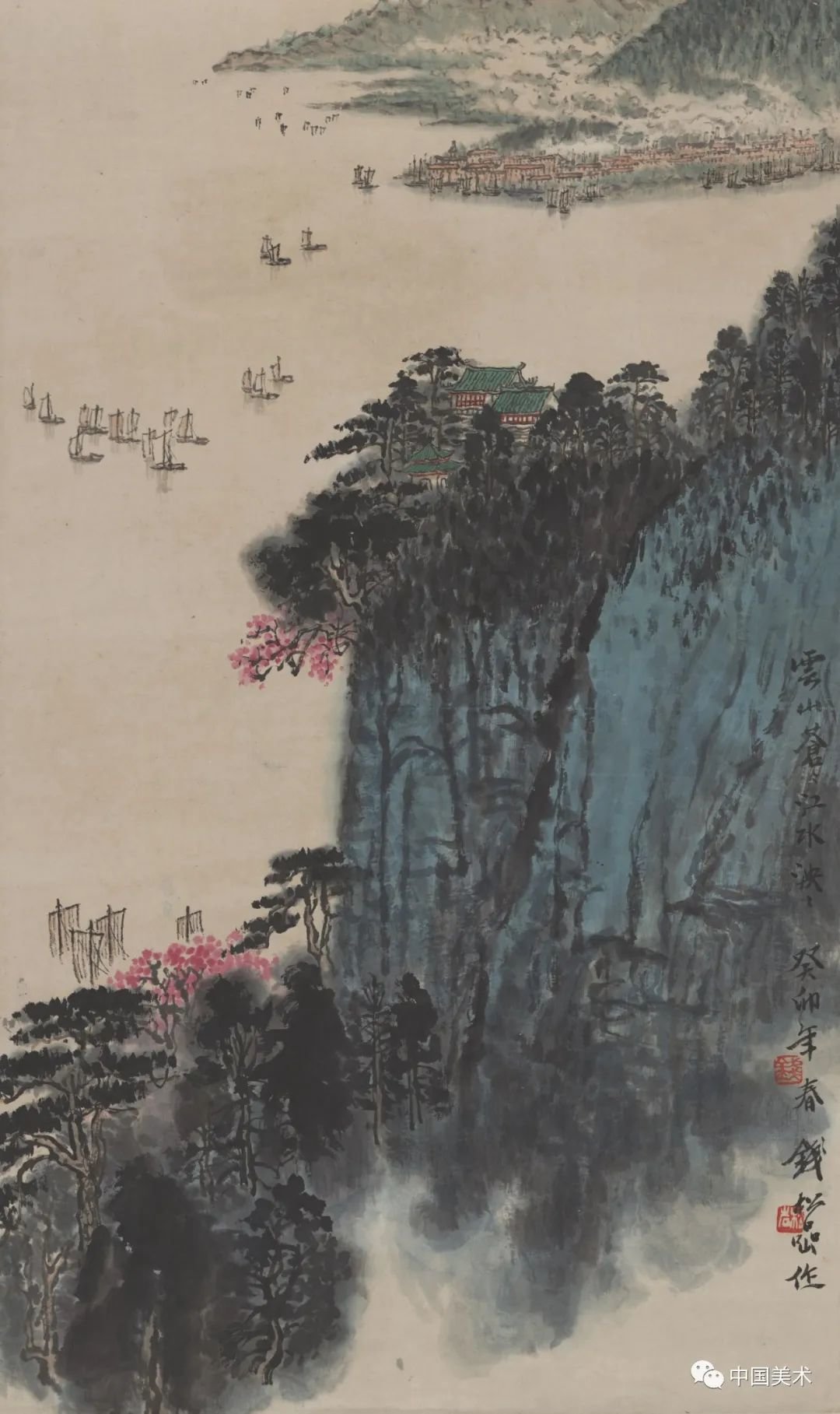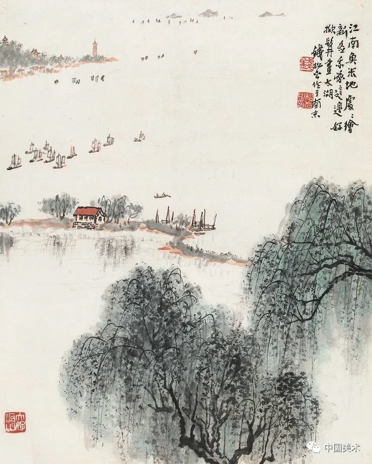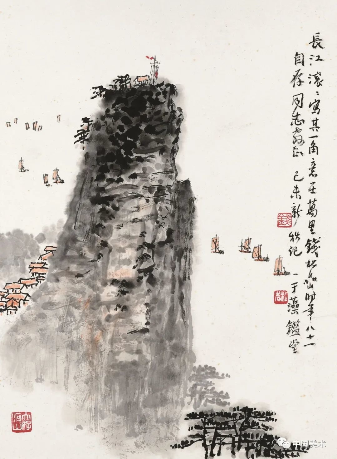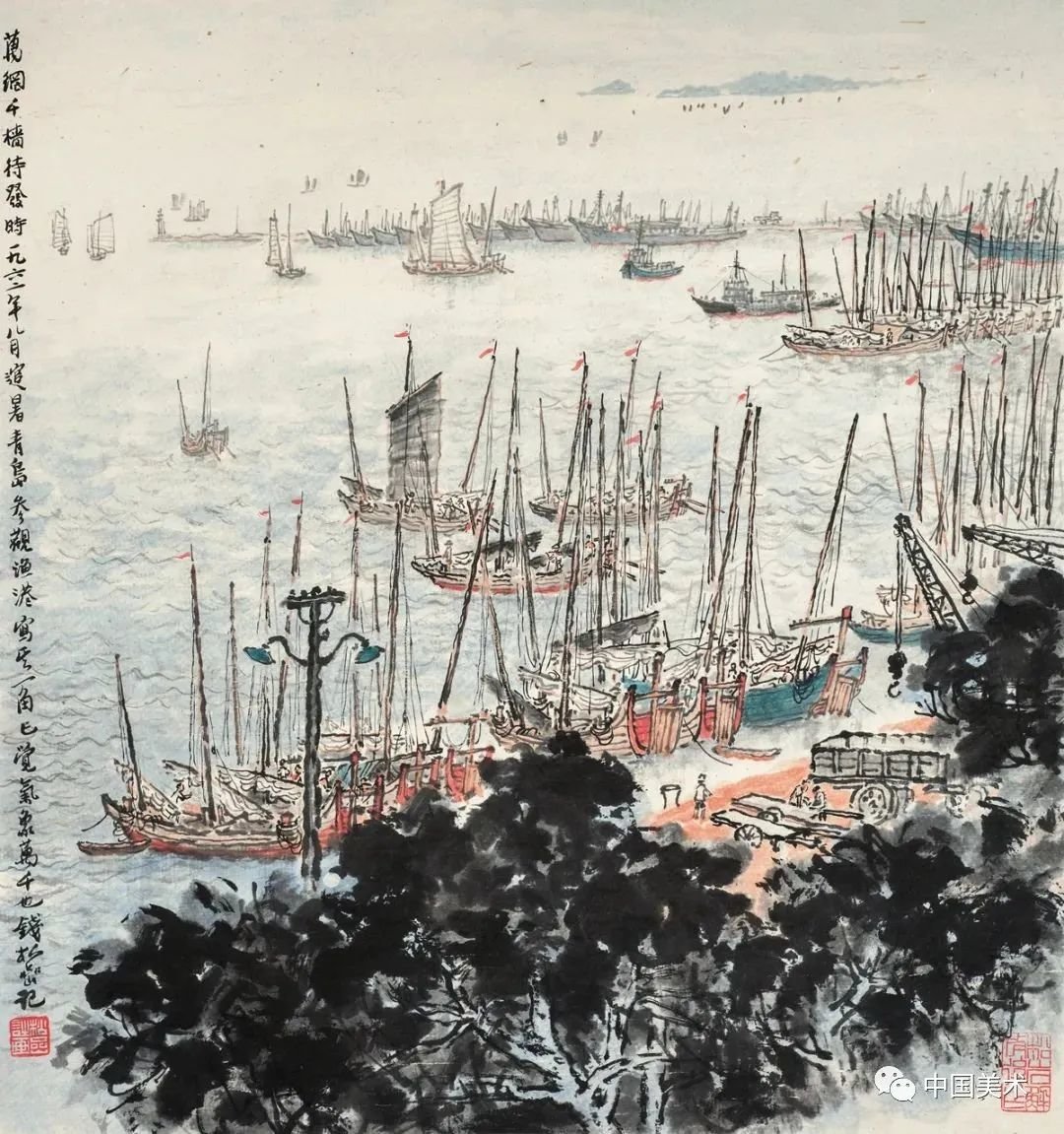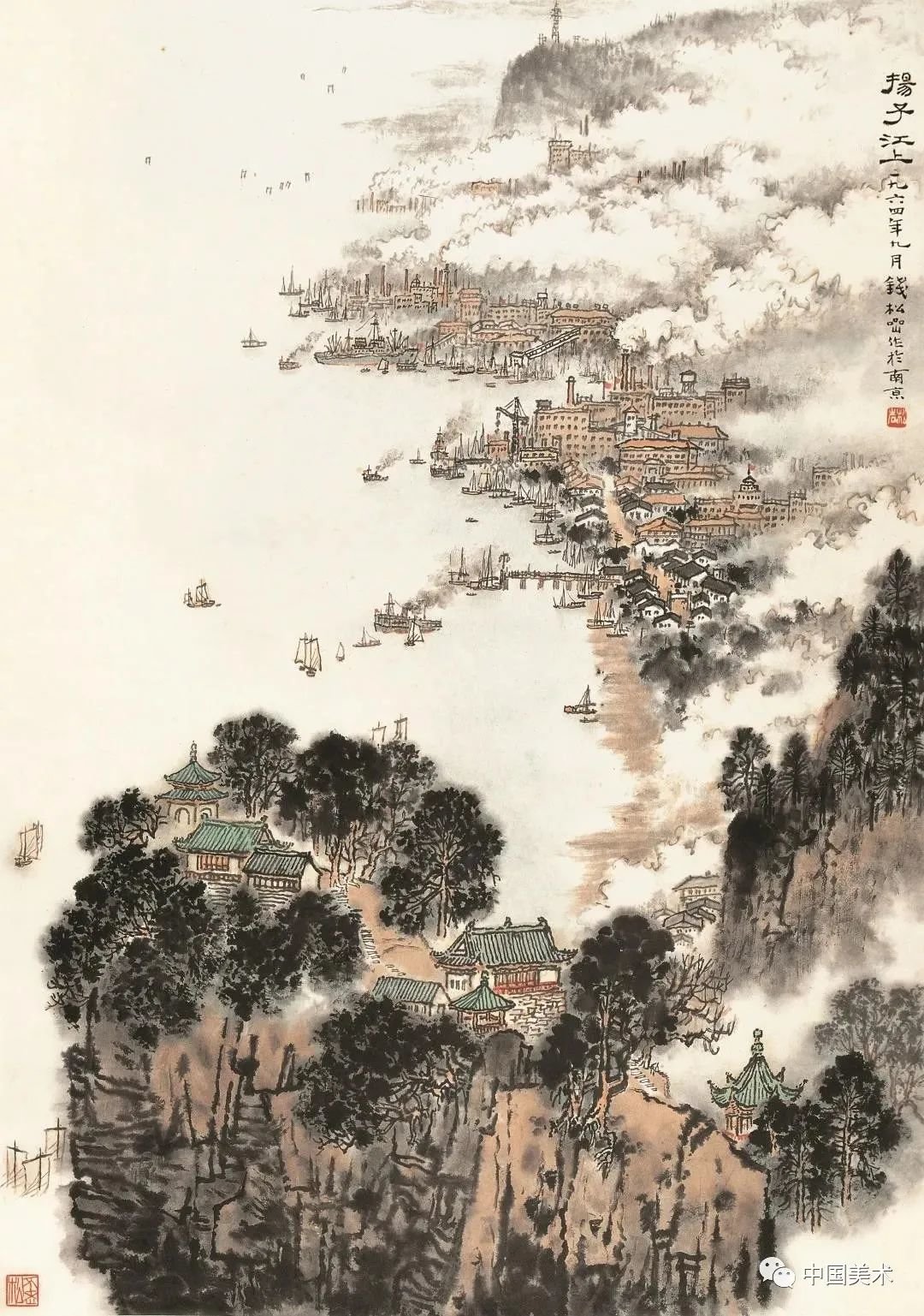 钱松嵒 扬子江上 纸本设色 1964年 江苏省美术馆藏