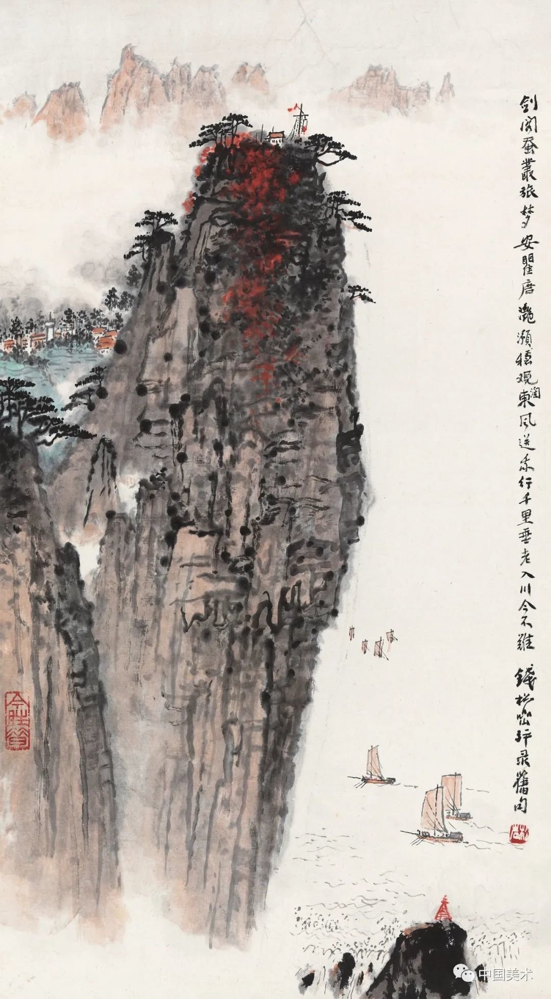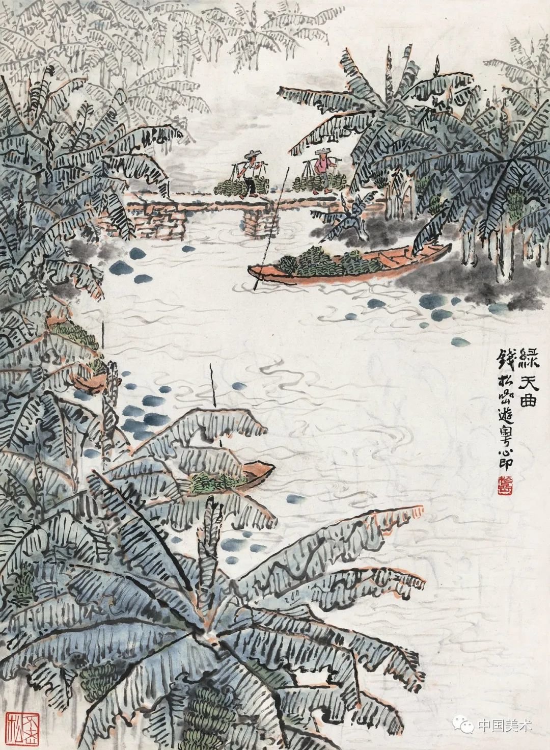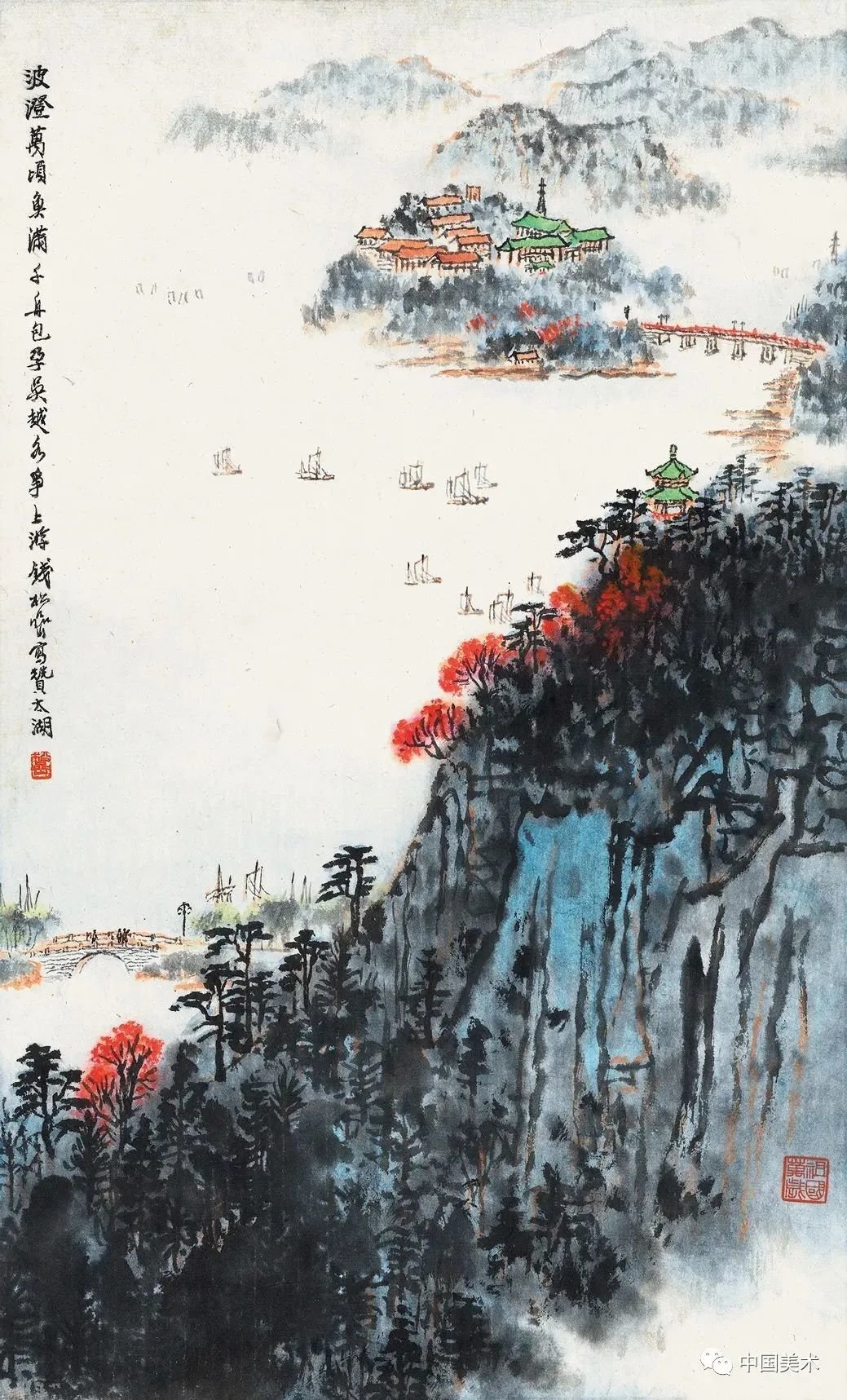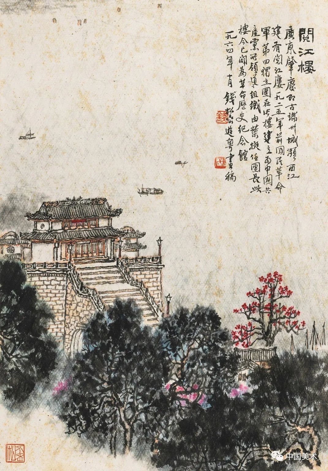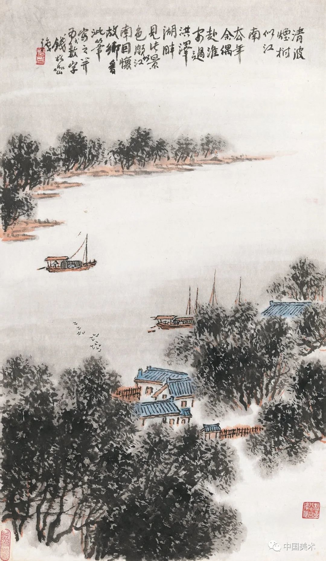 钱松嵒 扬子江上 纸本设色 1964年 江苏省美术馆藏