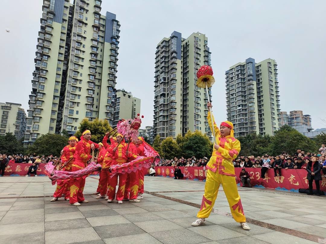 2月5日,正月十五下午,四川南充仪陇县张思德广场,2023年南充市舞龙舞狮比赛,精彩开擂。这是疫情防控政策优化调整后的首个元宵节,龙腾狮吼闹元宵,格外热闹。