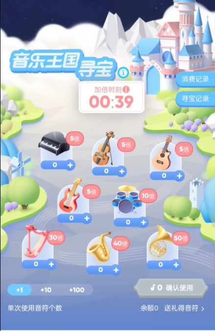 黄先生告诉妻子,“音乐王国”的游戏设置类似竞猜。游戏页面中有8种乐器,每隔一分钟,系统就会弹奏一种乐器,玩家的任务就是押注弹奏的乐器。单注价值20饭票(用于购买直播间内各产品和服务,包括但不限于虚拟礼物、身份特权等),折合人民币2元,最高可追加至4000注,即人民币8千元。