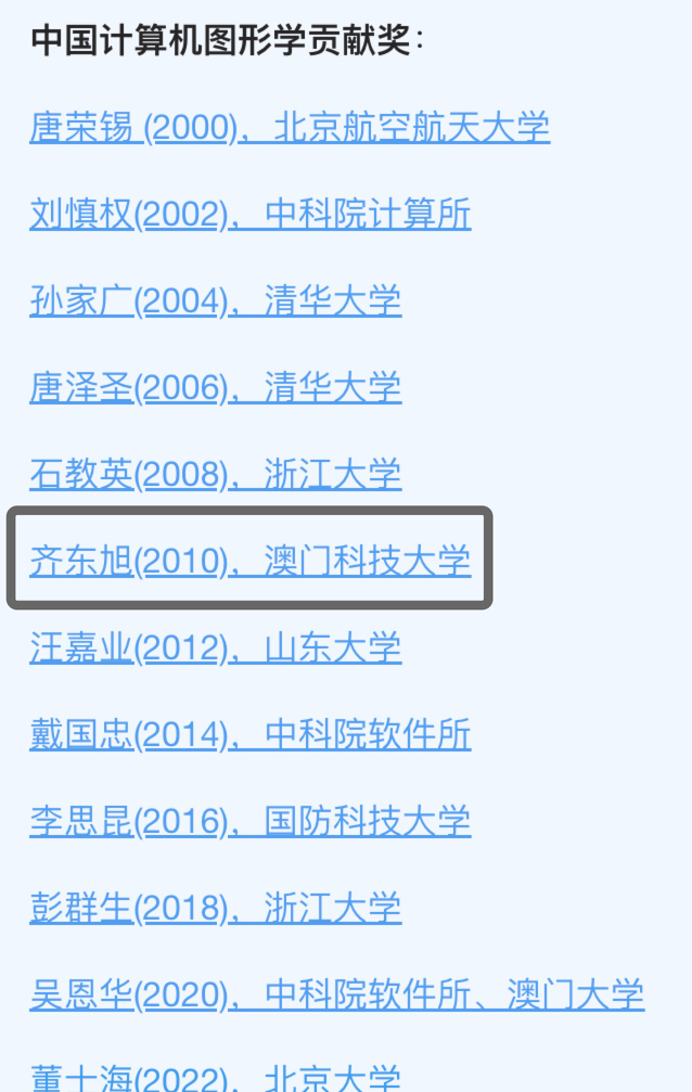 此前,齐东旭教授获得中国计算机图形学贡献奖(Chinagraph’2010)。