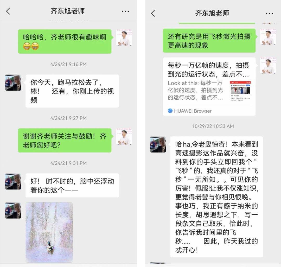 此前,他发了一张照片齐老很感兴趣,还特地来找他交流,言语之间满是科研人对于新鲜事物本能的好奇心。
