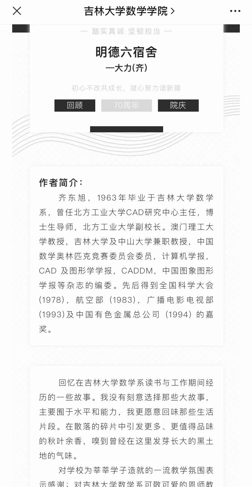 就在4个月前,他还写下了一篇回忆录,记录了他在吉林大学数学系的许多记忆,也让我们感受到学术之外的齐教授,总是风趣幽默的。