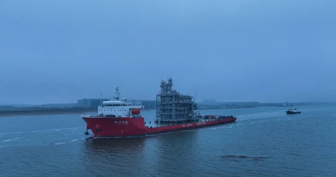 2月6日,在南通海事局通州湾海巡执法大队的精心保障下,中国籍重大件船“钰洲启航”安全驶离燕达(海门)重型装备制造有限公司码头。