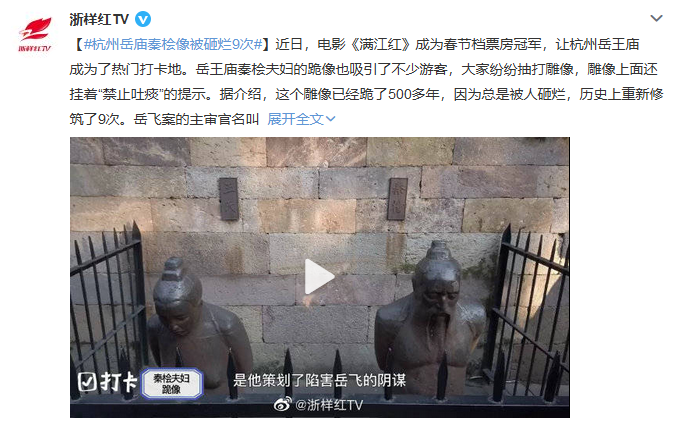 岳飞的冤案被历朝历代不断演绎,自明代,人们便在杭州岳王庙前铸起了秦桧夫妇等人的生铁跪像,500多年来,坚固如斯的材质也因被砸烂而重铸了9次。
