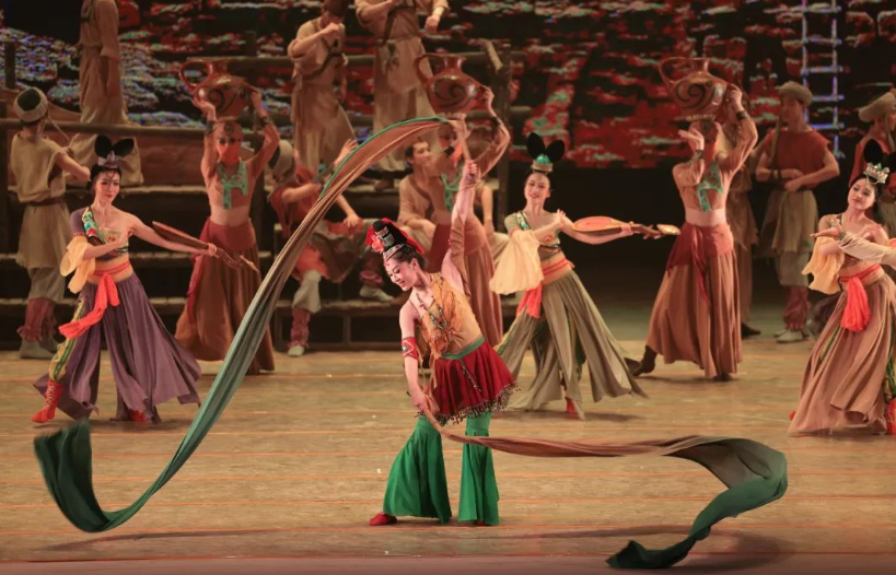 敦煌是人类的宝窟,是艺术的圣殿,博大精深的敦煌文化也孕育了灿烂辉煌的现代舞台艺术。由兰州歌舞剧院创作演出的大型舞剧《大梦敦煌》,是一部富于传奇色彩的四幕舞剧,以敦煌艺术宝库的千百年创造历史为背景,以青年画师莫高与大将军之女月牙的爱情历程为线索,用丰富多彩的舞蹈语汇,演绎了一个凄婉动人的爱情故事,展现了绚丽多彩的敦煌文化,颂扬了敦煌艺术的创造者。