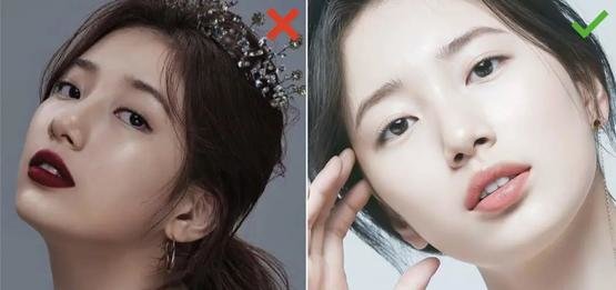 虽说轻微凸嘴是兔系的代表特征,但为了避免太违和,整张脸只看得见一张嘴,我们在涂口红的时候还是要尽量避免像大红色、酒红色这种高饱和度的浓艳色系。