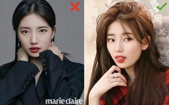像下图的秀智同样是偏分低马尾,但右边明显突出了发丝的纹理感与蓬松度,是不是整个人看起来都要舒展很多?