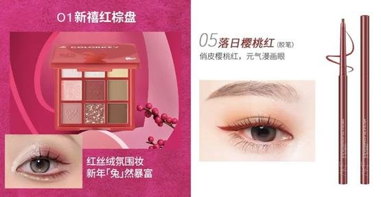 左:colorkey九色眼影#01新禧红棕;