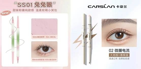 右:卡姿兰双头卧蚕笔#02微醺电流